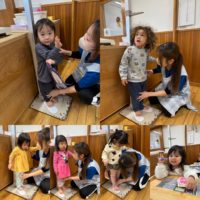 | 異年齢交流 | 卒園児や、地域のお友達との交流を楽しみます。お兄ちゃん・お姉ちゃんから、色々な遊びを教えてもらう機会を設けるとともに、一緒にゲームや音楽等で遊び、異年齢での交流を図ります。 |