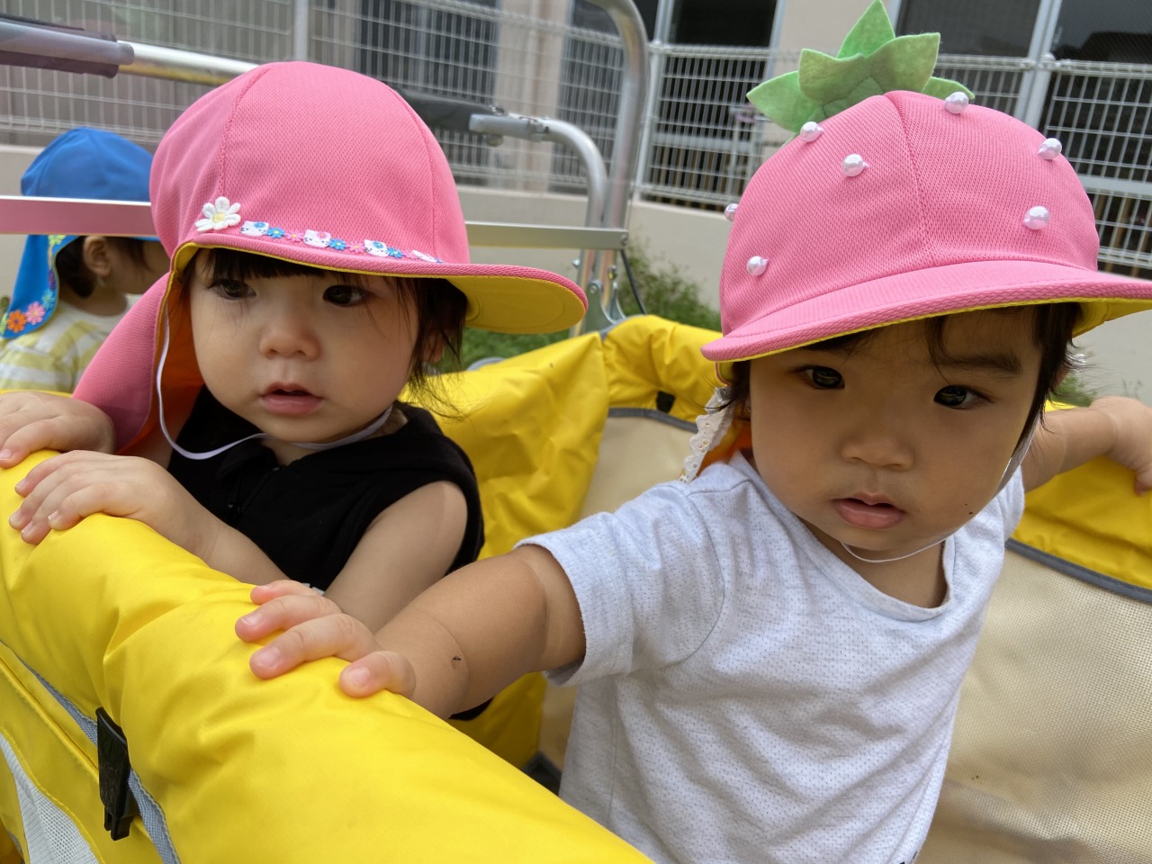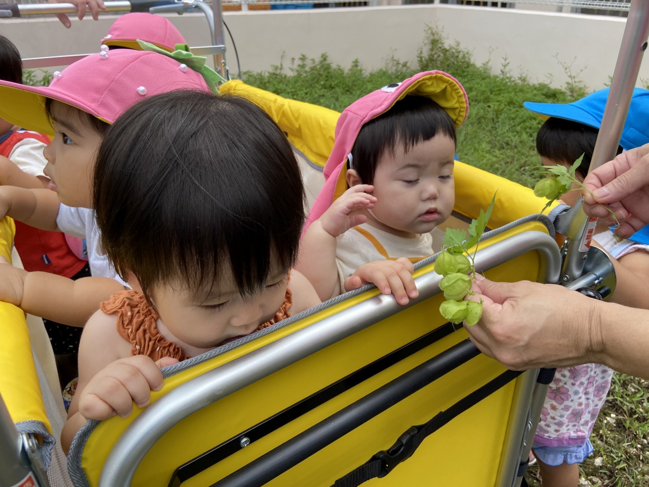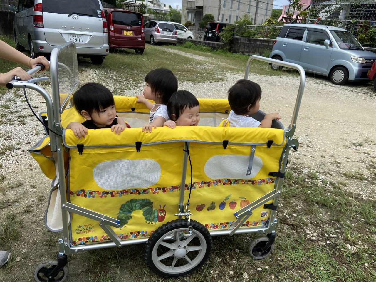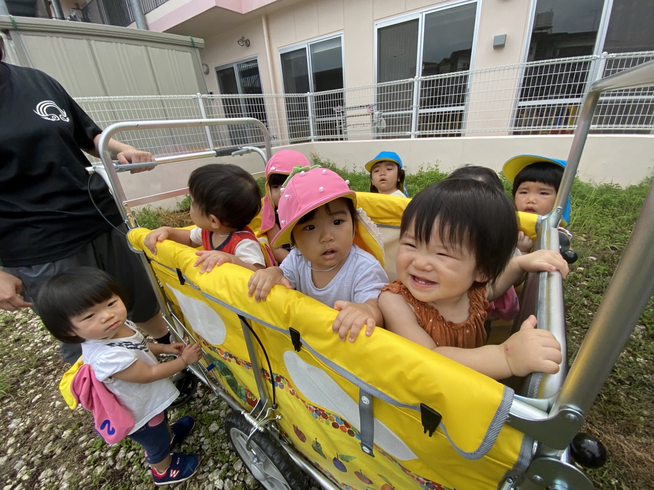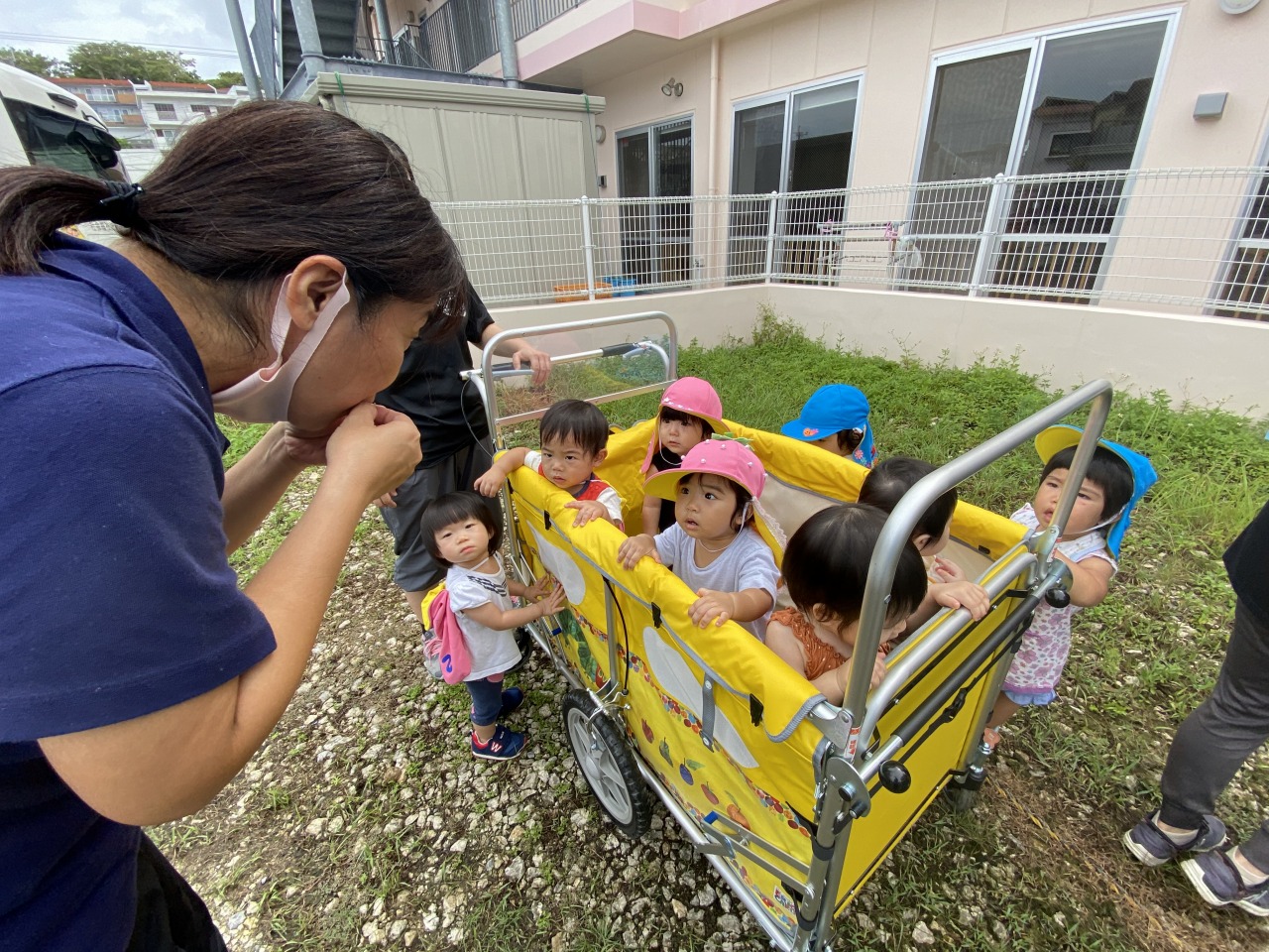 帰りも散歩カーに乗って笑顔溢れるひよこ組さんです