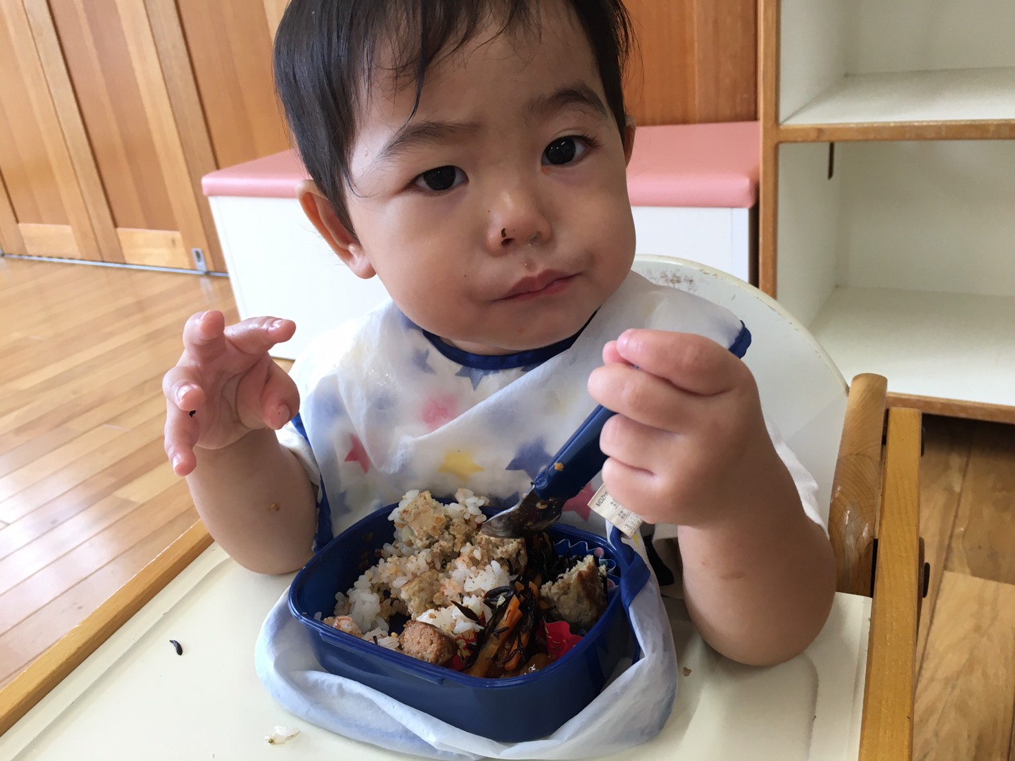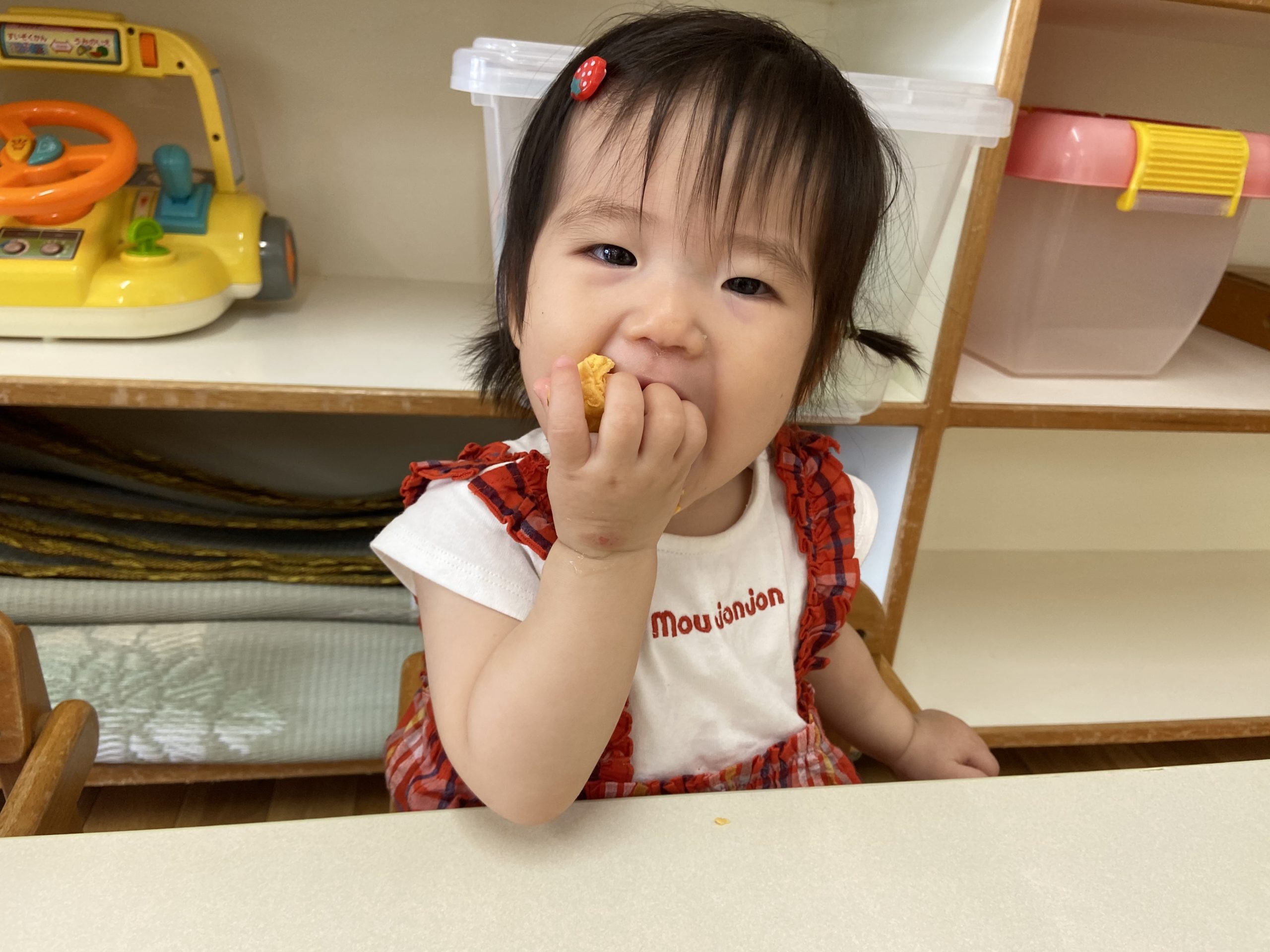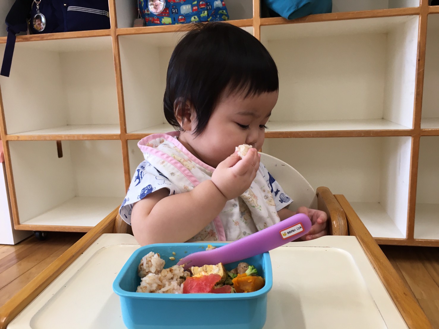 「いただきまーす」とご挨拶をすると、大きなお口でモリモリいっぱい食べています