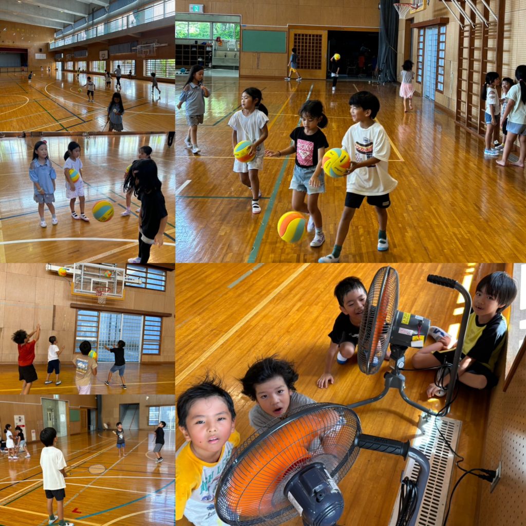 こまめに水分補給をうながすとともに、扇風機の前で休憩をする等して休みながら時間が許す限り遊んでいました。
