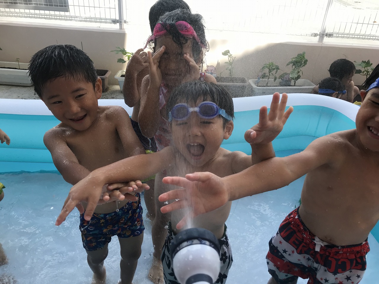 「先生~水遊びって楽しいね