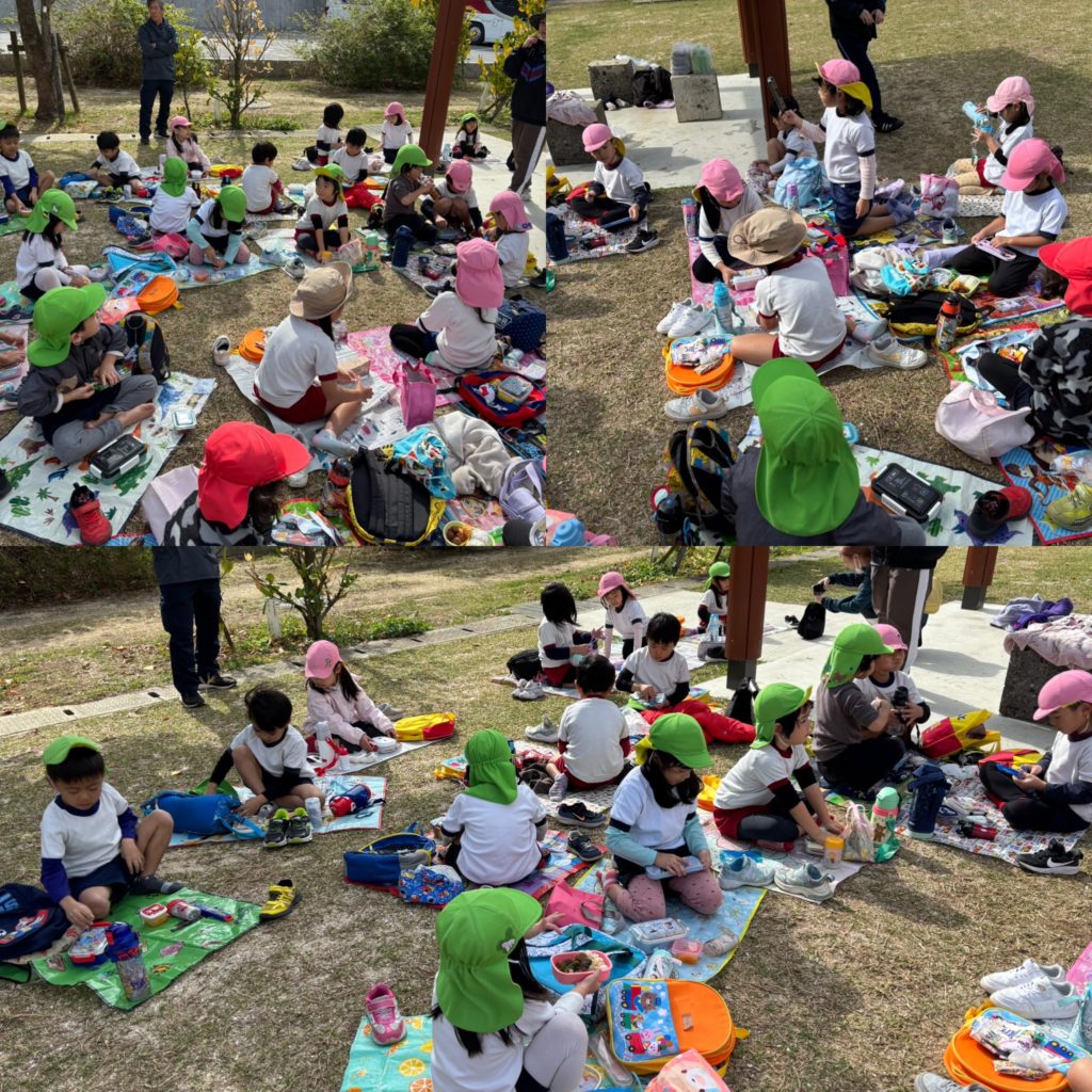 お弁当の中身を見せ合いっこしながら、一口、一口おいしそうに頬張っていました(#^.^#)