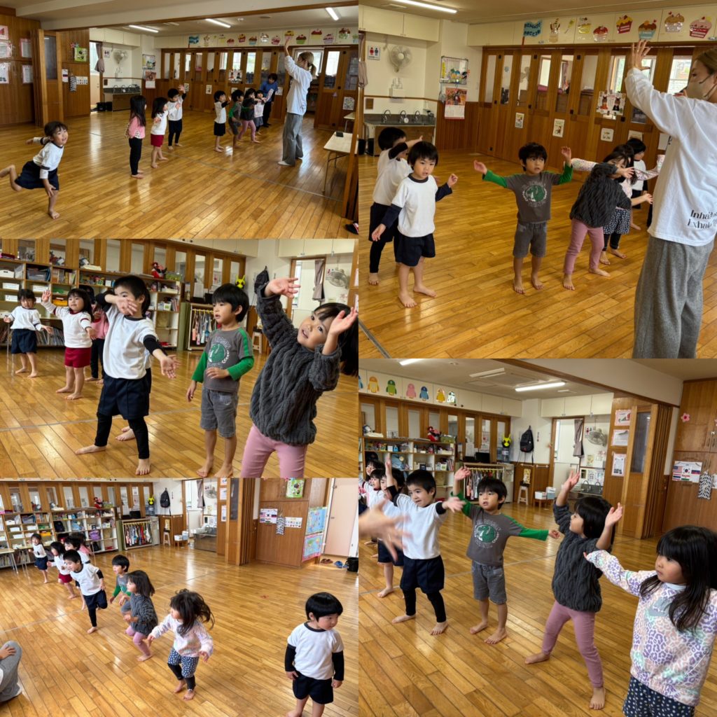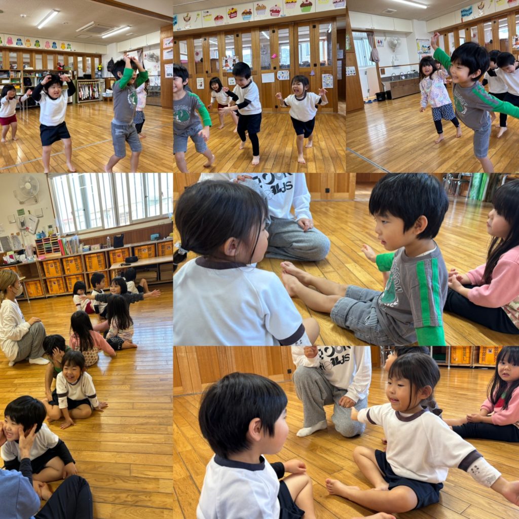 先頭のお友達が振付を考え、それを後ろの人に伝えていく♬