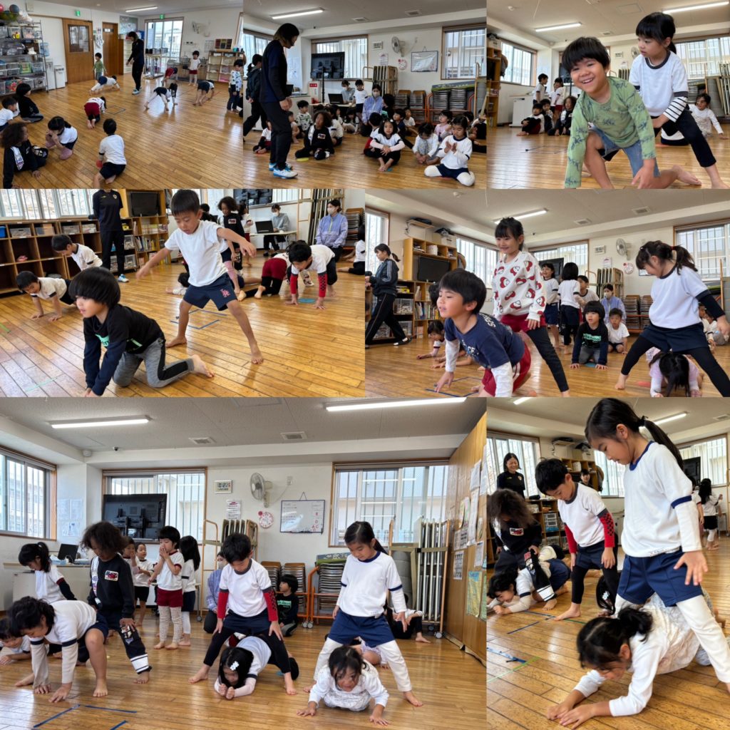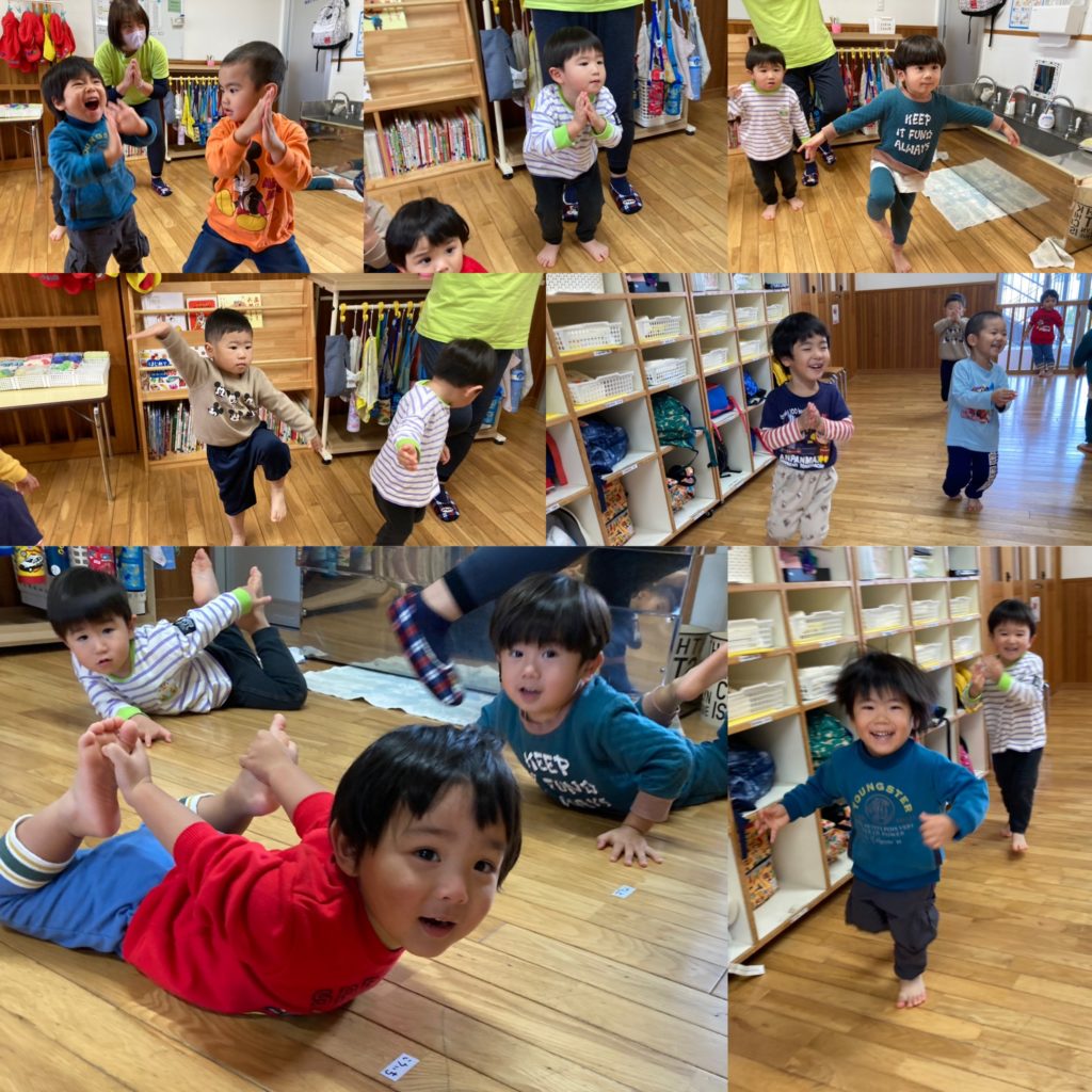 うさぎ組🐰は、ヘビやカメ、うさぎなどの動物ごっこをして、運動したあとに、