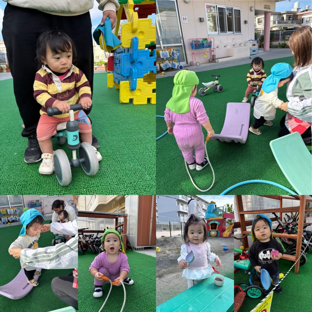 滑り台や三輪車、砂遊びはもちろん、バランスボードに乗って、ゆらゆらして遊んで過ごしていました。