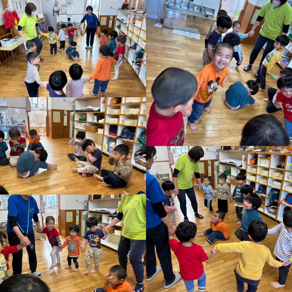 オニ役をきめて、みんなでオニ役の周りを手をつないでぐるぐる回る♪