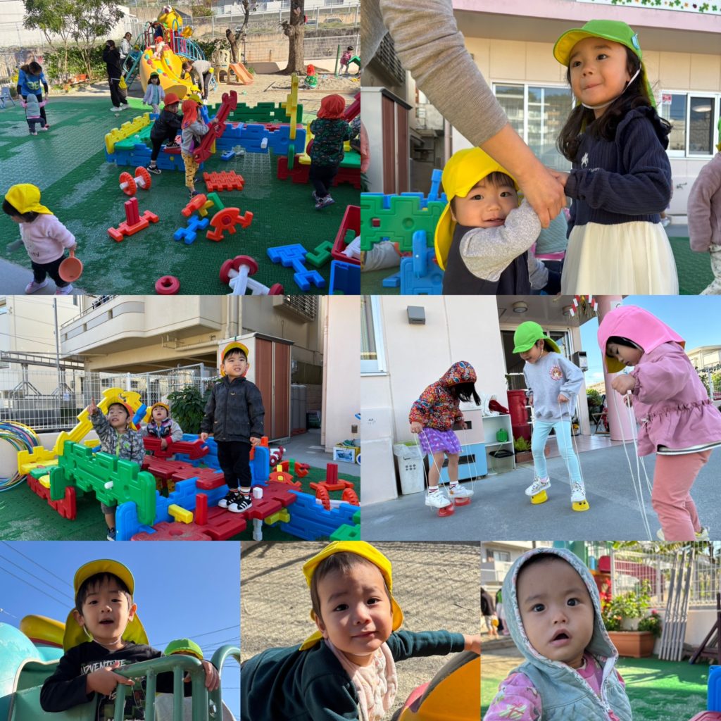 ひよこ組🐤とうさぎ組🐰、ぱんだ組🐼のお友達は、園庭遊び~♪