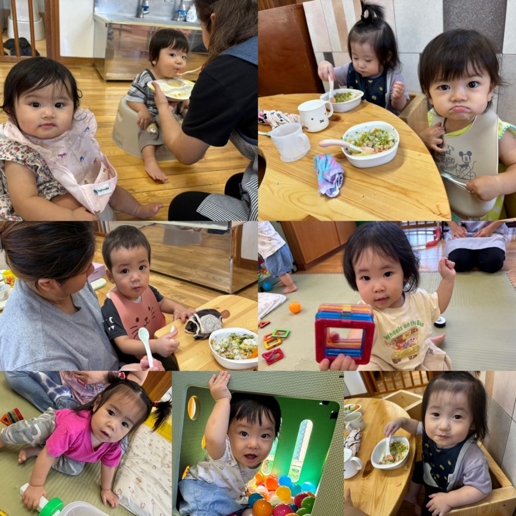 まず、ひよこ組🐤をのぞいた際は、昼ご飯を食べている子と自由遊びをしている子で分かれて過ごしていました。