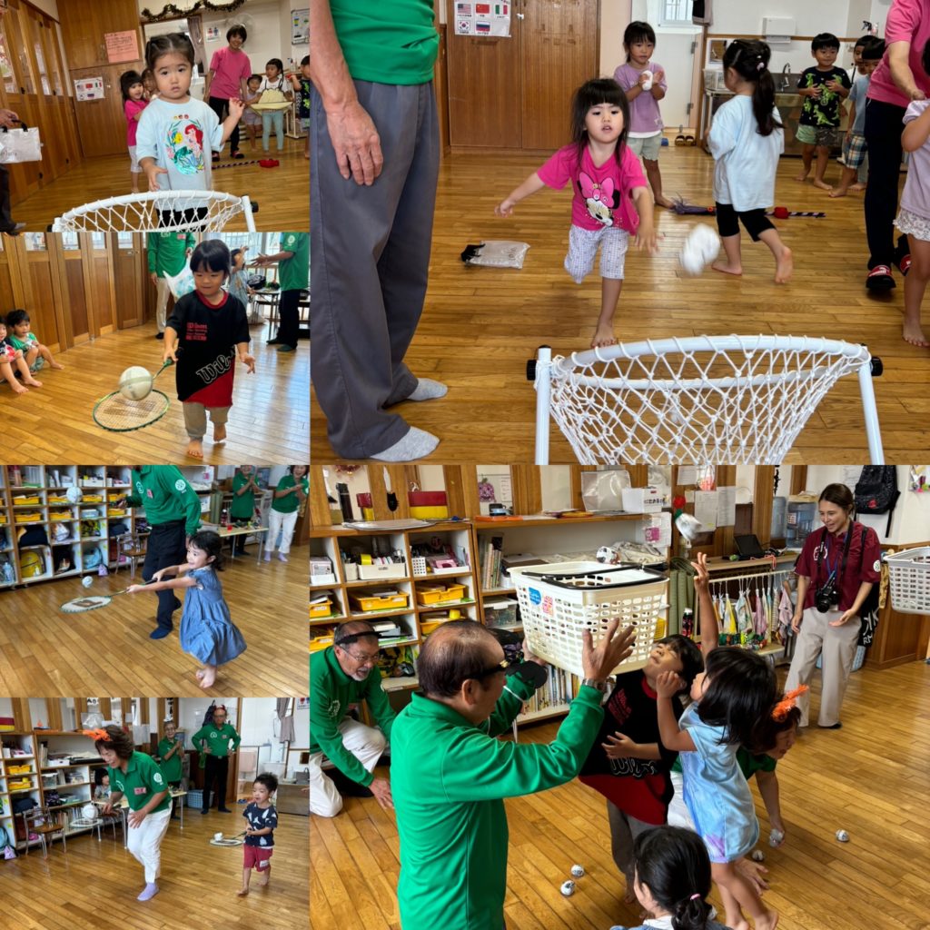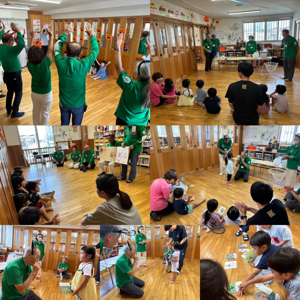 交流会では、絵本の読み聞かせや手遊び、三線やハーモニカ演奏に合わせて歌を歌ったり、ボール遊びをして楽しみました。