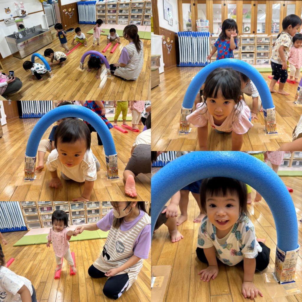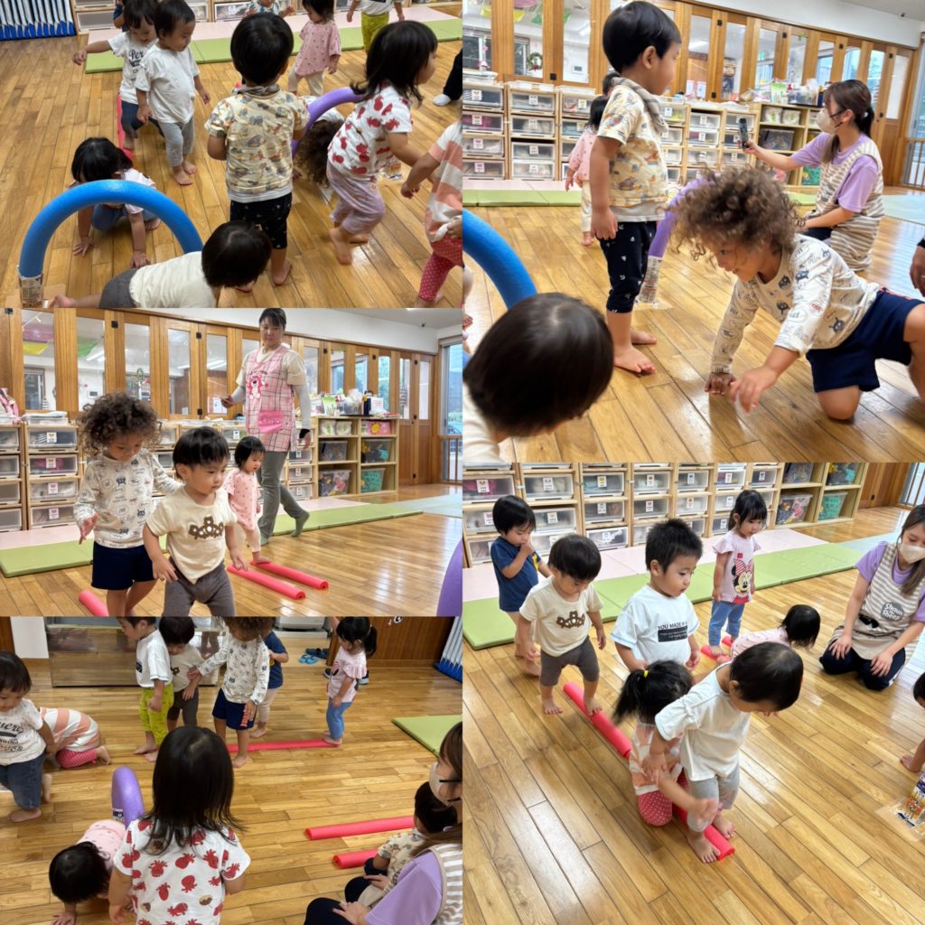 上手に棒の上を歩いたり、輪っかをくぐったりして遊んでいました♫