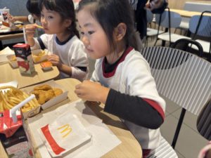 朝は、パン屋に行って、朝食を買って、食べて、お泊り保育は終了(^^♪