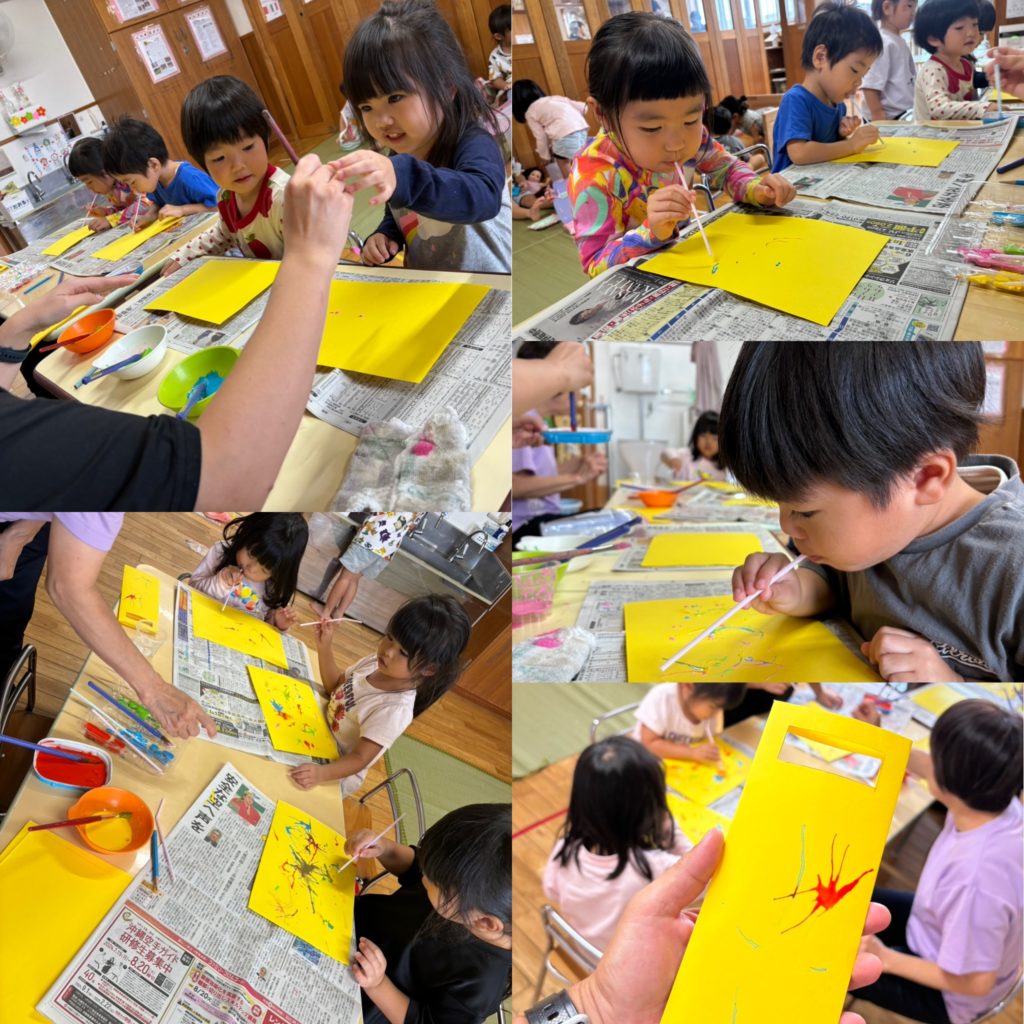 最初はうまく息を吹きかけられなかった子達もいたけど、少しずつ絵の具が広がっていく様子、