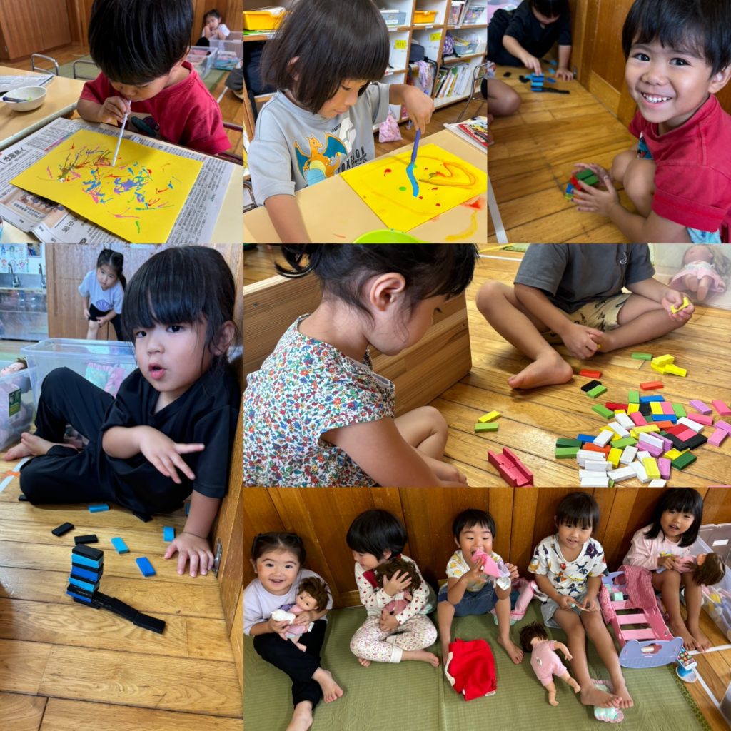ひよこ組🐤は、自由遊び。それぞれ気になったおもちゃを手に取って遊んだり、