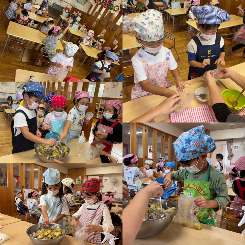 先日ぞう・きりん組のお友達は、芋ほり体験もしており、芋ほり体験の次は、やっぱりさつま芋を使った料理を作ろう♫