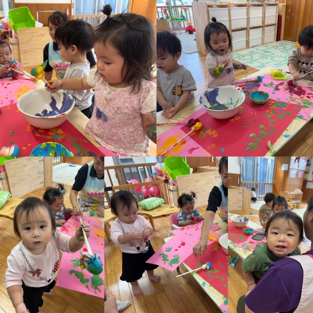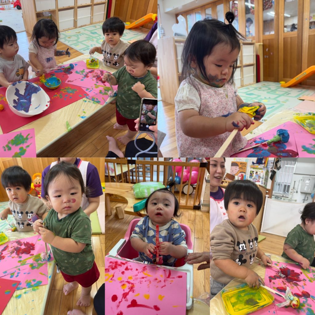 画用紙に、赤色や青色、黄色、緑色等さまざまな色の絵具を使って色付け♫