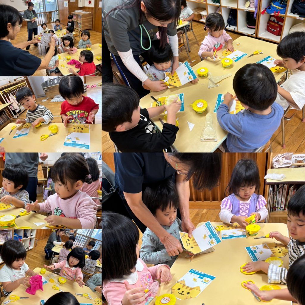 うさぎ組🐰は、ハサミとのりを使う練習(^^♪