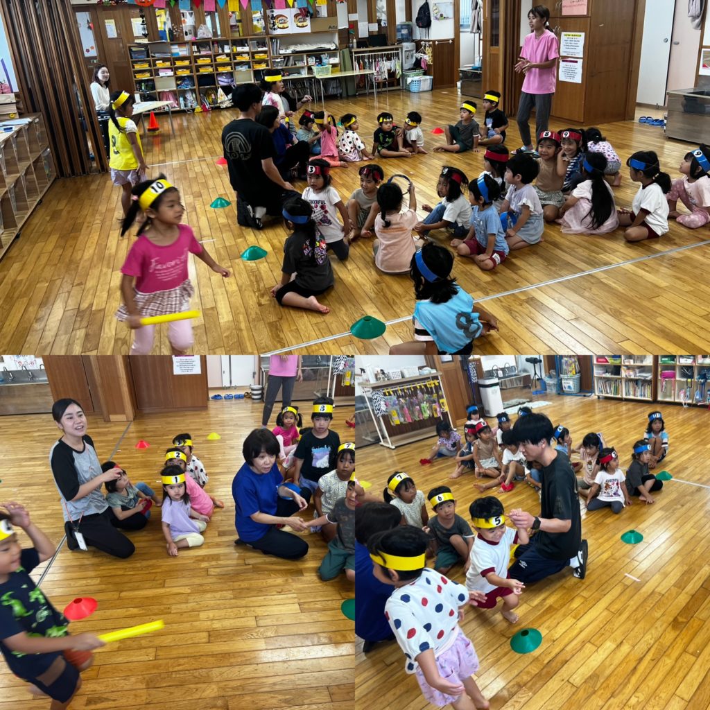 昨日の運動会園内リハーサルで出来なかったリレーを屋上でやろうとしていましたが。。。。(´・ω・`)