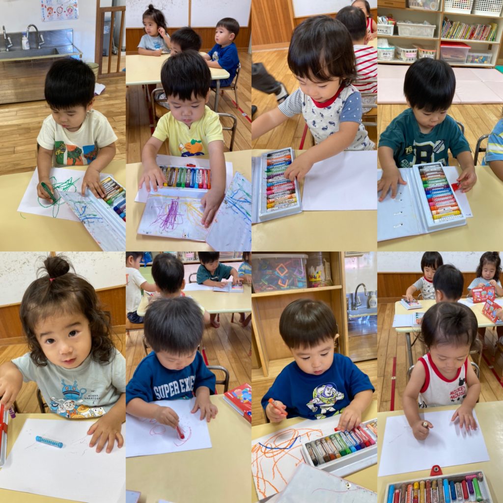 そんな中、本日りす組🐿では、白紙にクレヨンを使って自由にカキカキ✎
