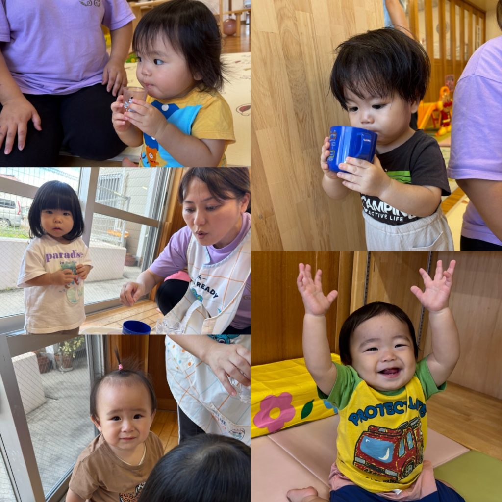 こまめに水分補給♪お水の入ったコップを自分でとって飲む子も♪パチパチパチ👏