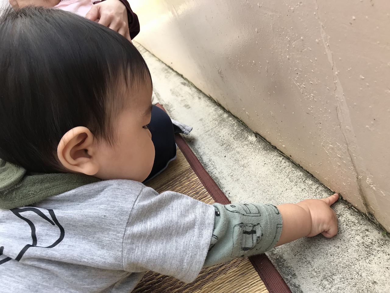 ハイハイが上手なお友だちは、ゴザを抜け出して、園舎の探検ですっ