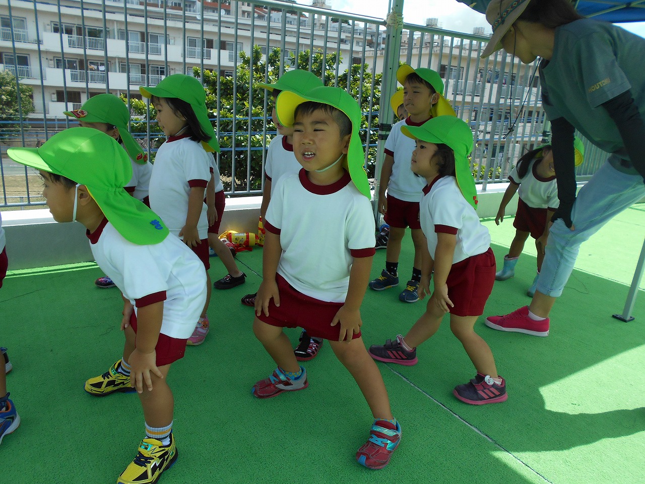 しっかり話を聞いて、あきらせんせいのまねっこしてみよっ