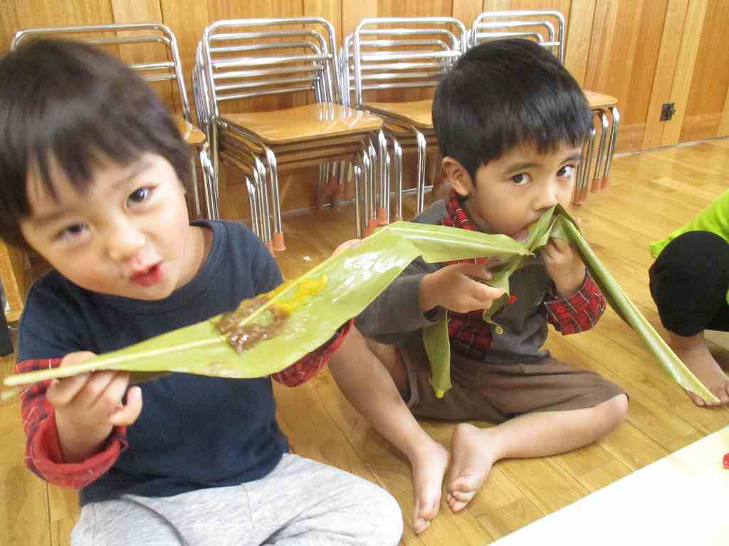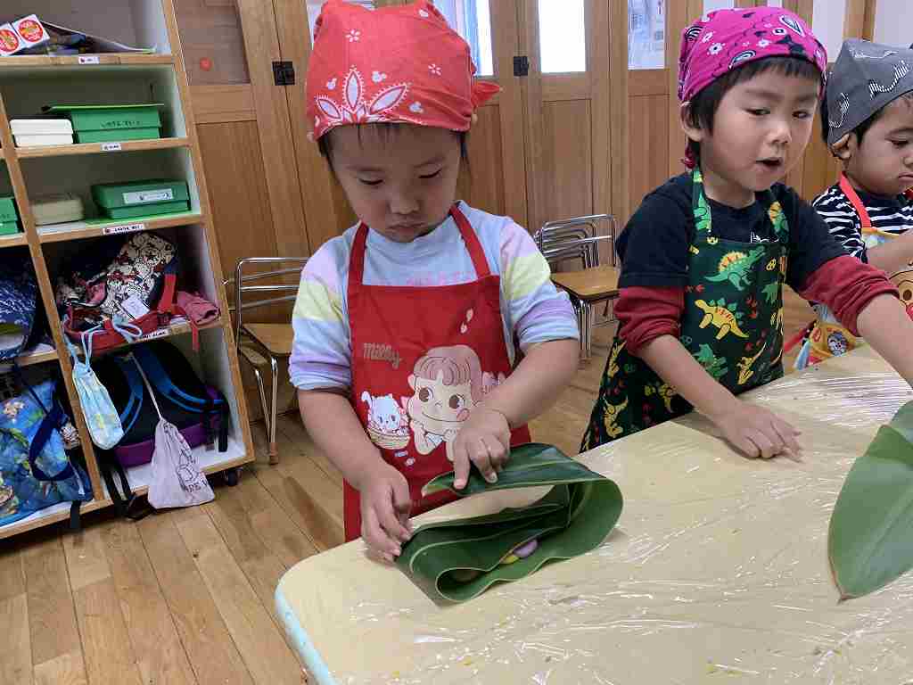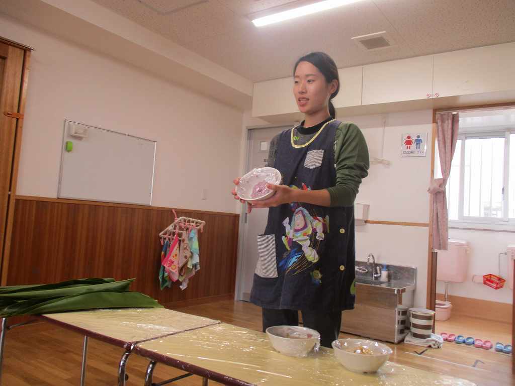 保育園で初めてムーチーを作り、