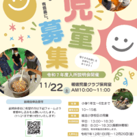 ワクワクいっぱいの新1年生に向けて! 報徳児童クラブの新入所説明会を開催します♪ お子さまの放課後が、もっと楽しく、もっと安心に―。 仲間といっしょに成長できる環境や、毎日のクラブでの過ごし方をご紹介します。気になること …