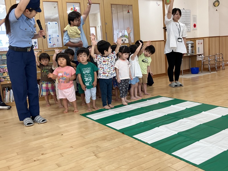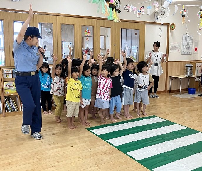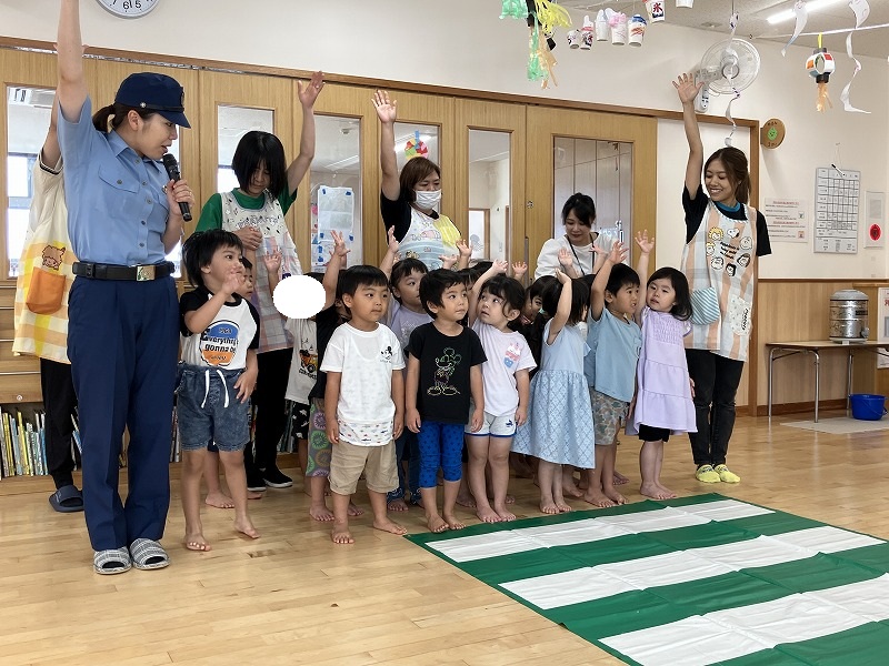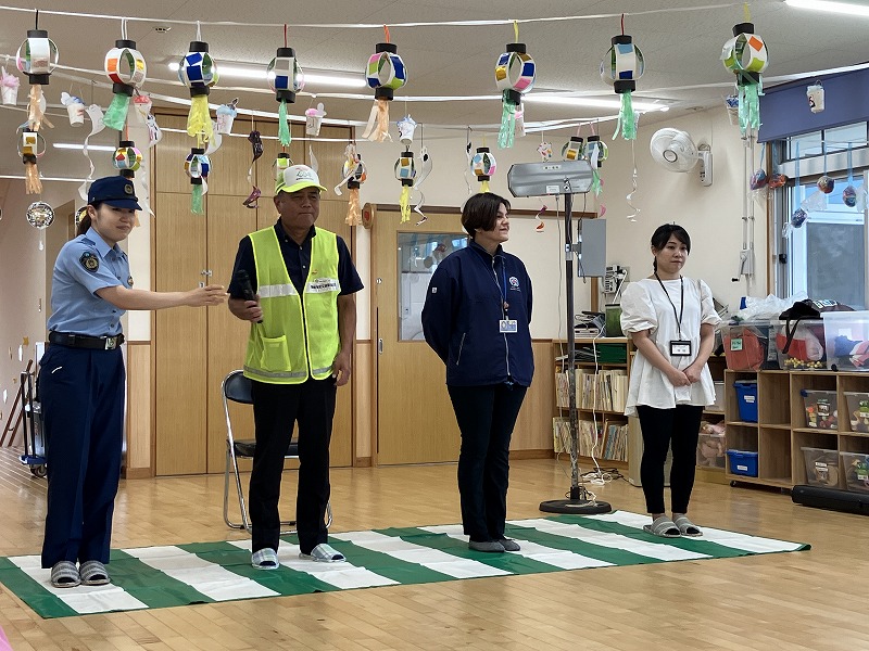 那覇警察署、市民生活安全課の方がきてくださり、交通安全についてお話をしていただきました。