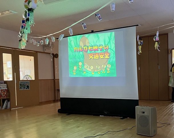 最後は、プロジェクターをみて交通安全について学びました。