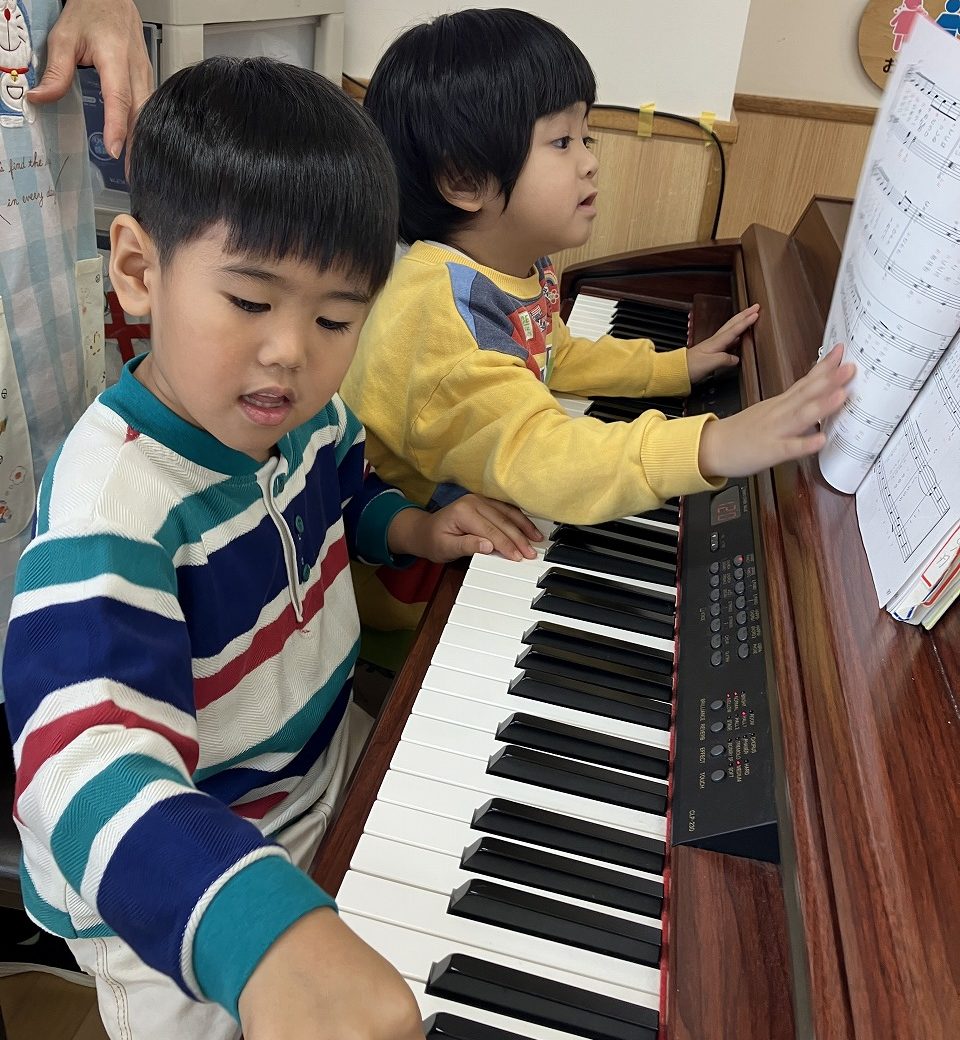 先生が朝の会や帰りの会の時間に弾いているピアノに興味深々でした🤩