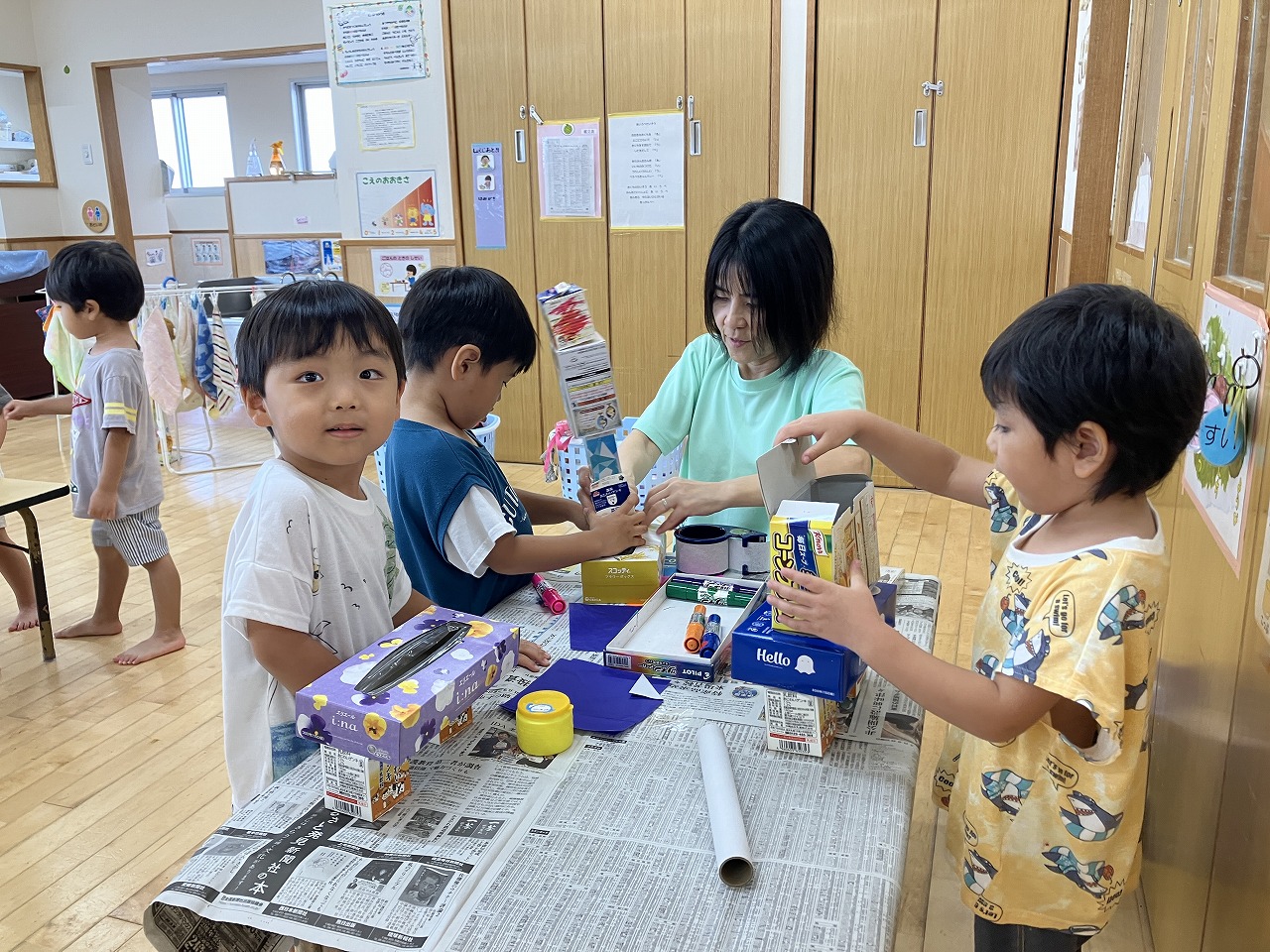 廃材を使って遊びました![]()