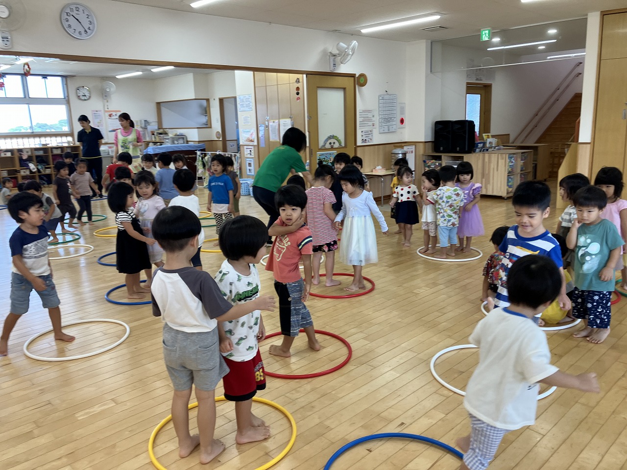 お友達と協力してフープの色や