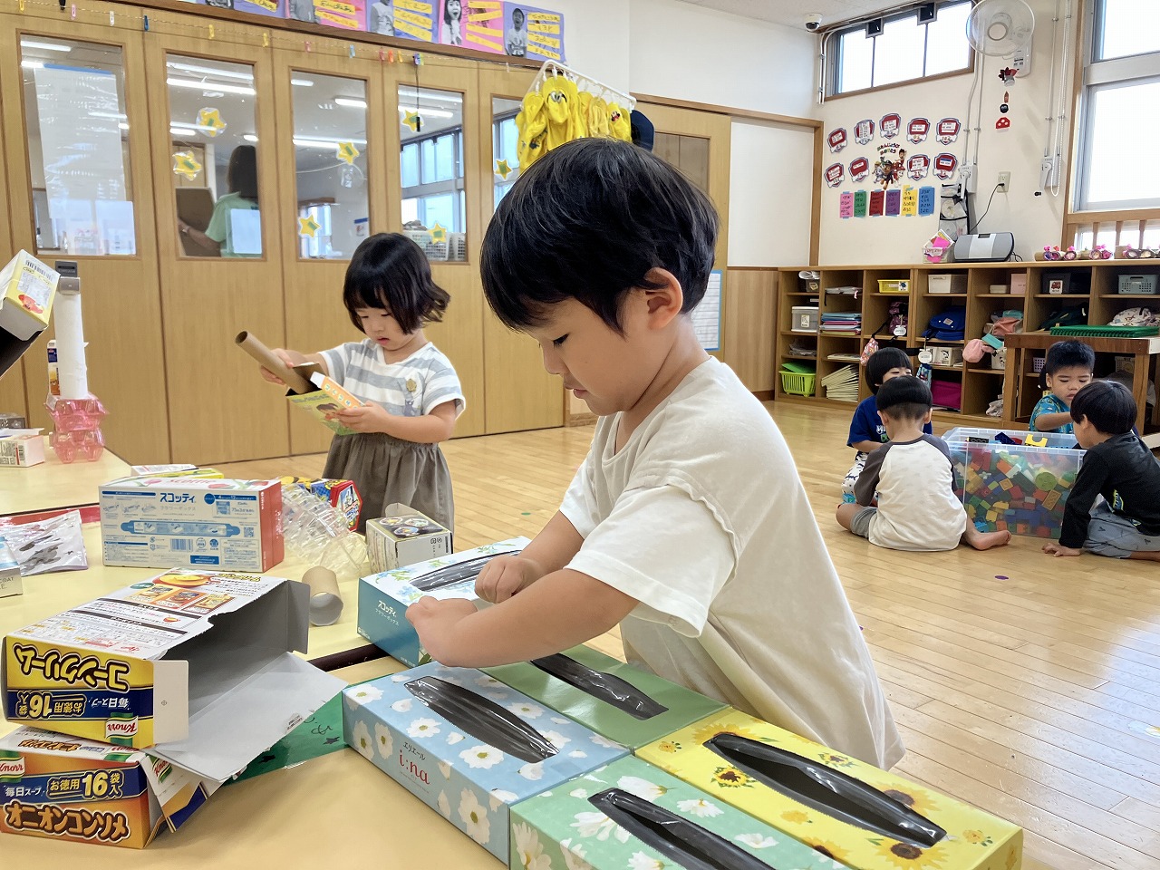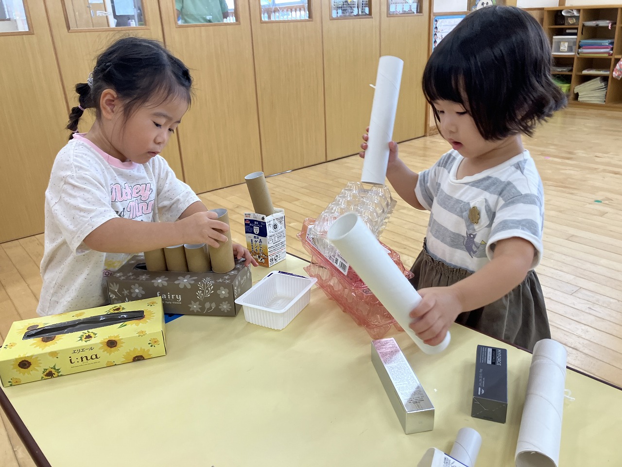 廃材を使って遊びました![]()