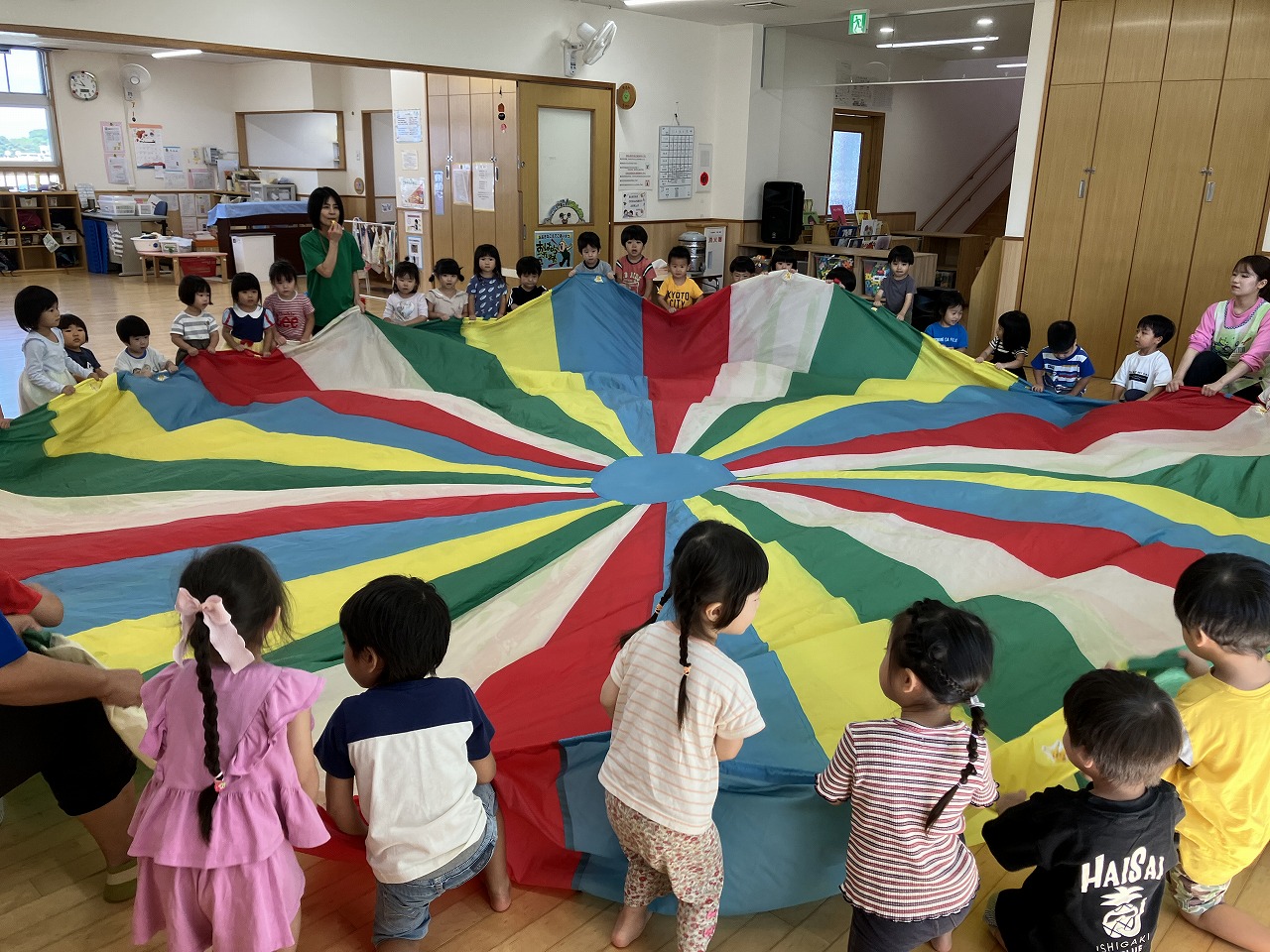 お友達と協力してフープの色や
