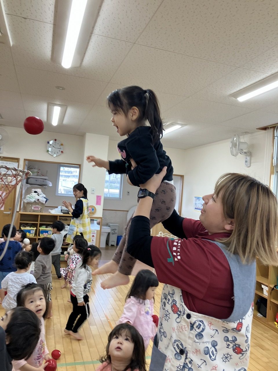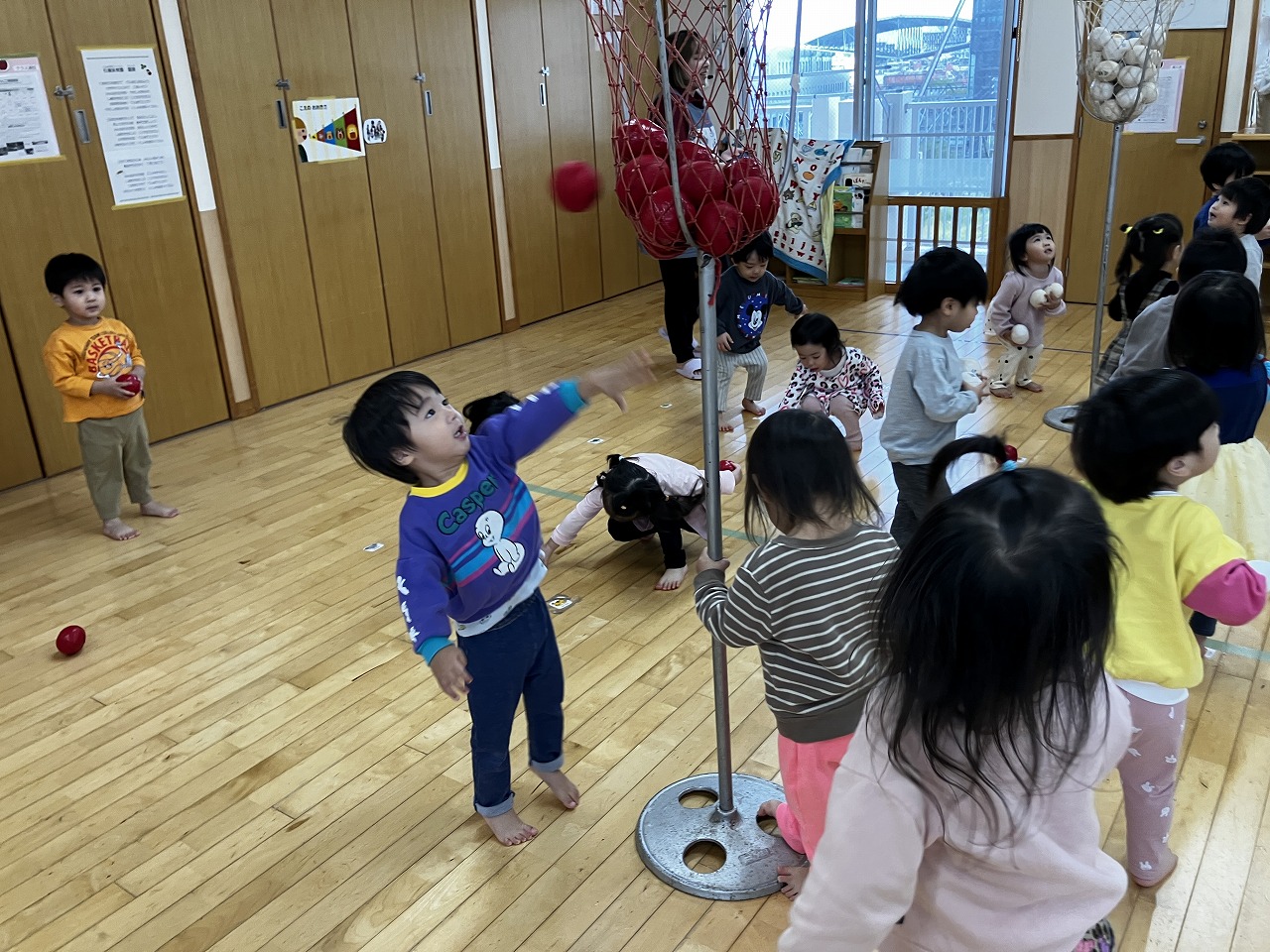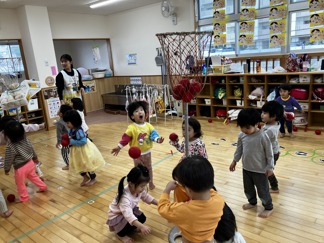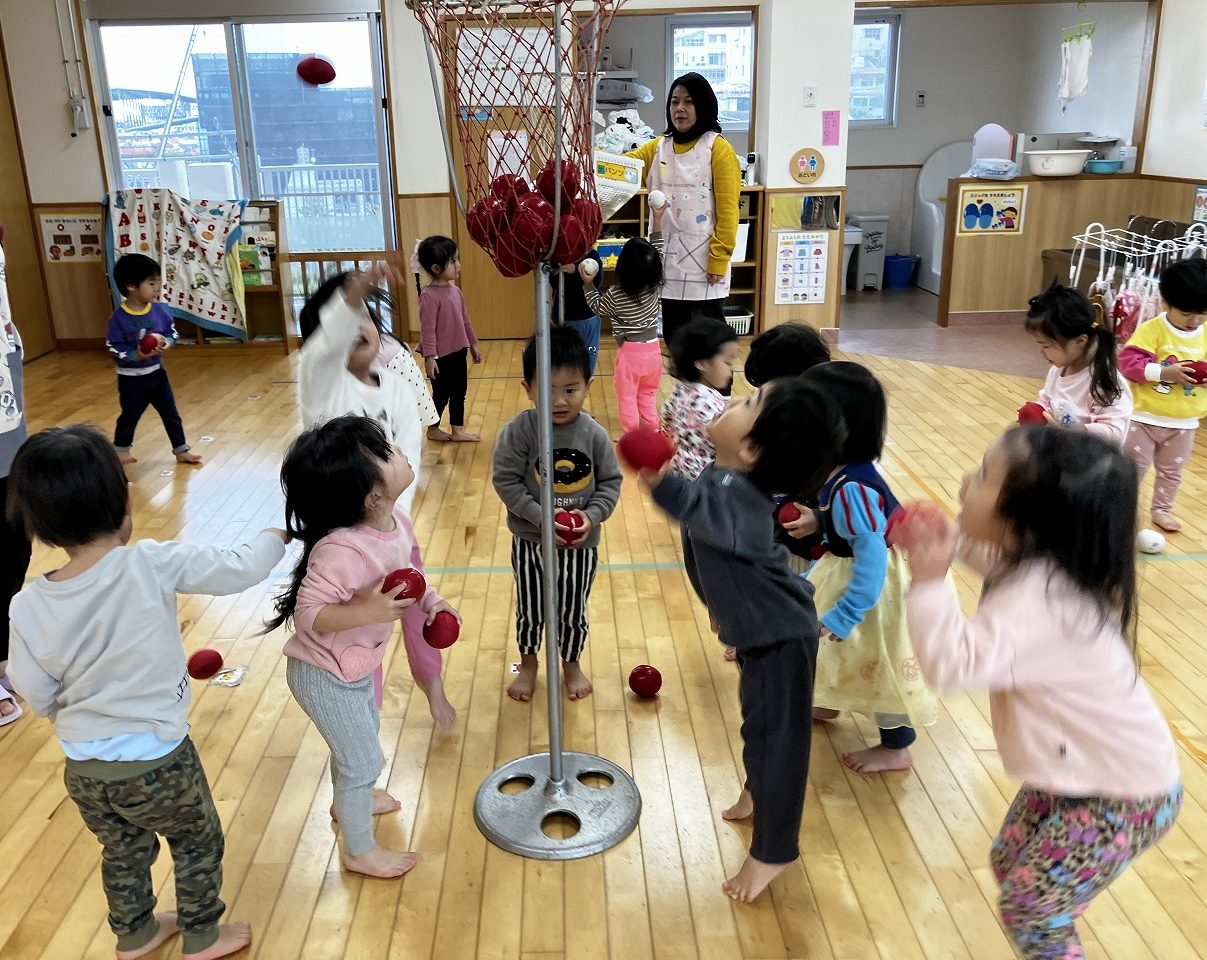 続いて、りんご組さん🍎玉入れ遊びをしました(^^♪