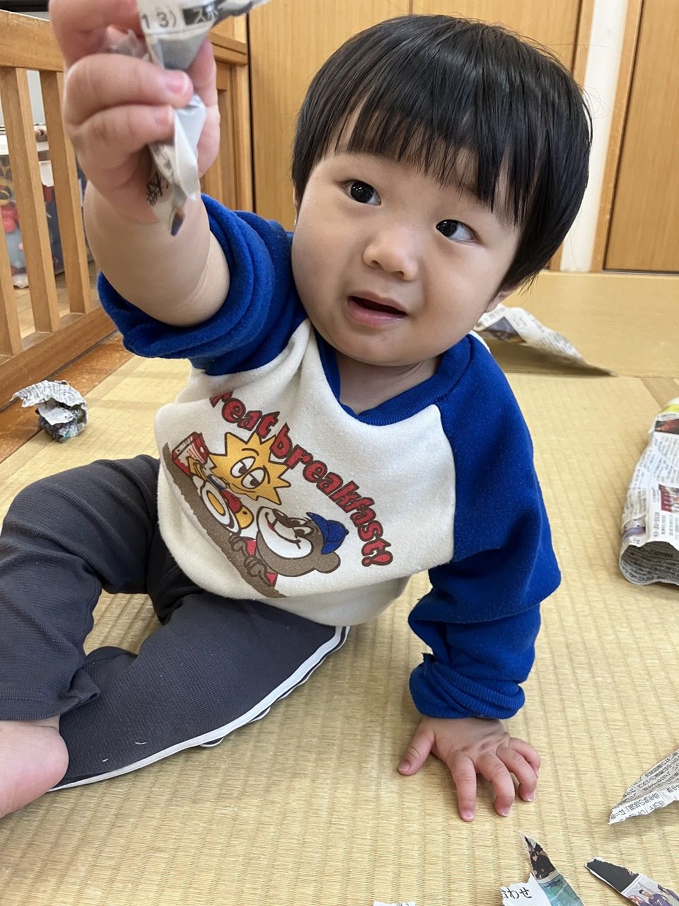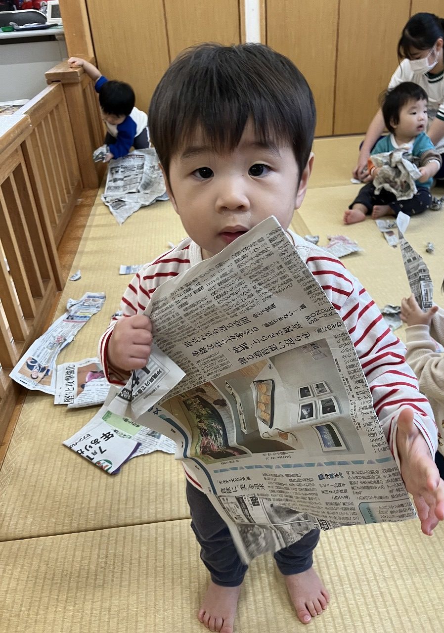 いちご組さん🍓は、お部屋で新聞紙遊びをしました(^^♪