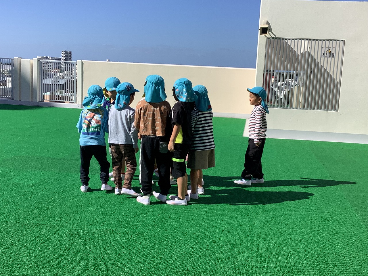 ぶどう組さんが「屋上あそび」へ出掛けます。