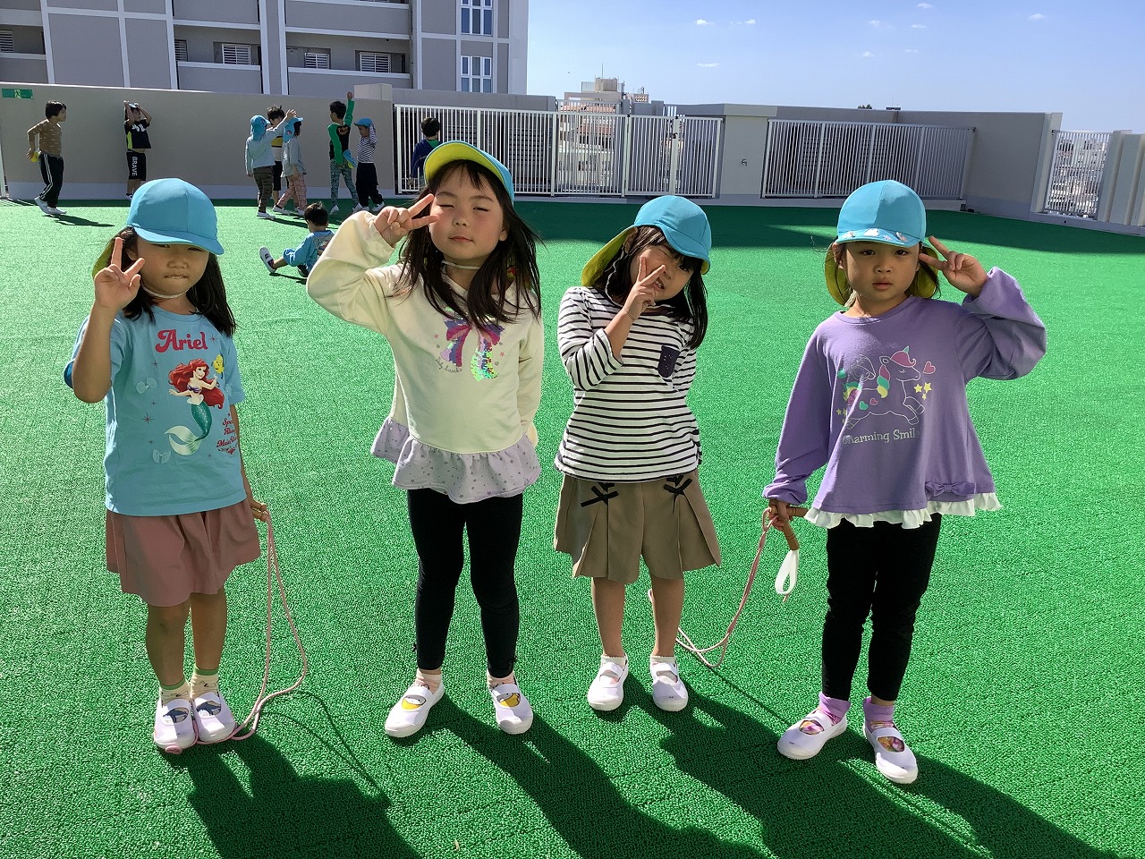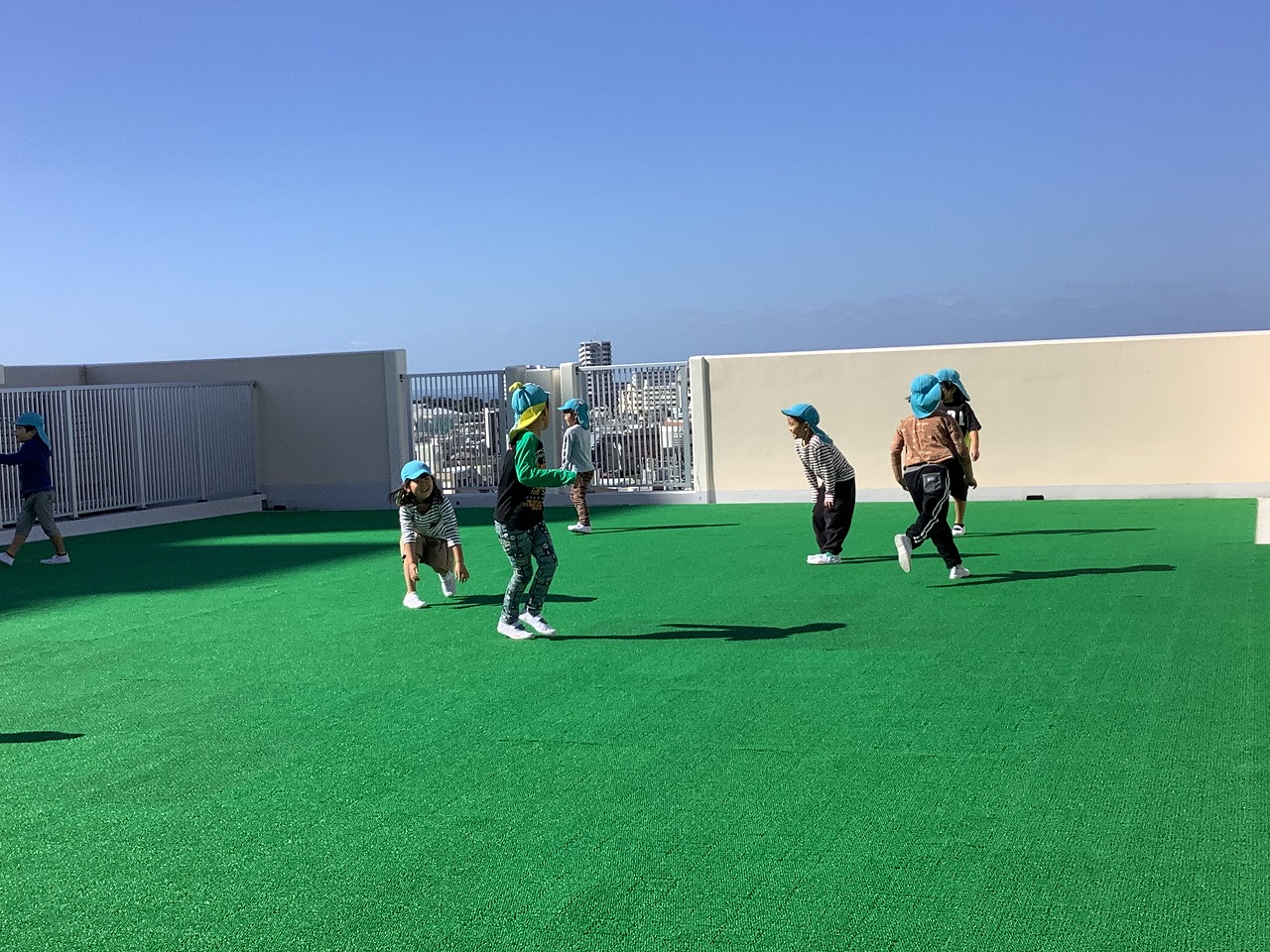 広い屋上では、鬼ごっこや縄跳び、かけっこ等、思い切り身体を動かして遊びました。