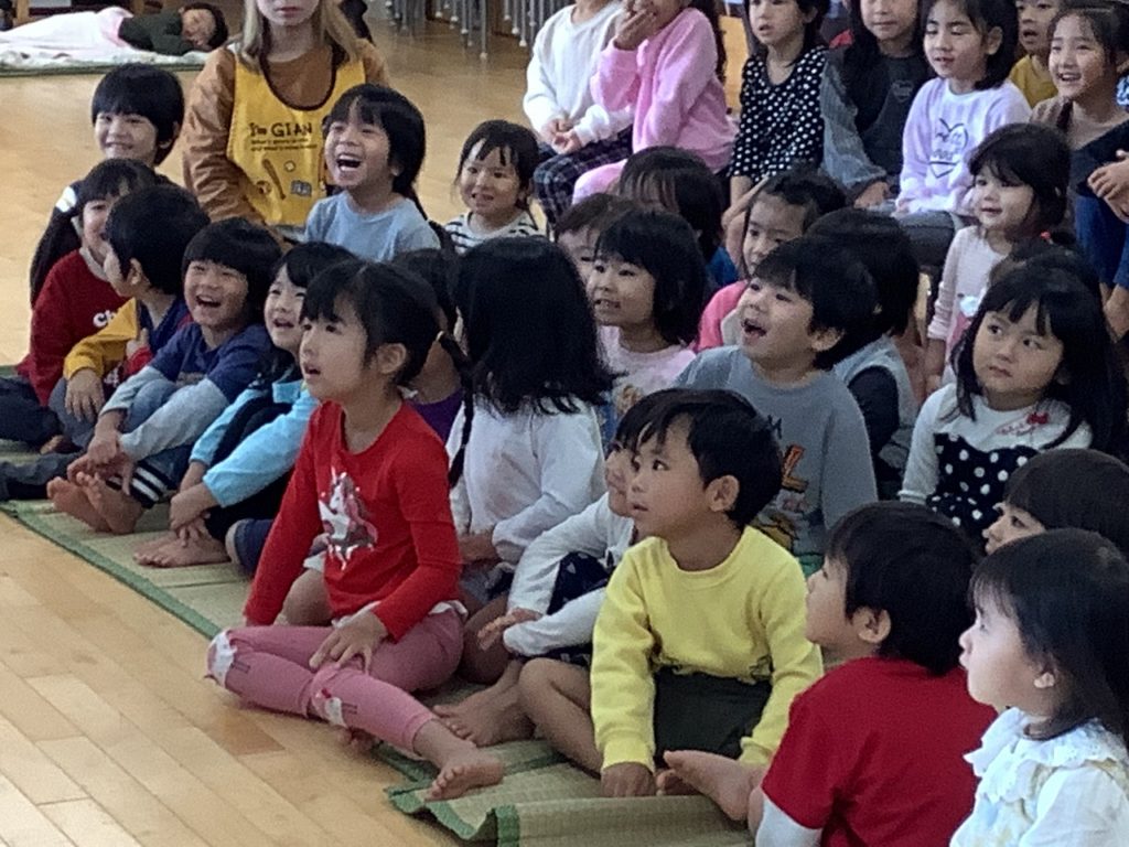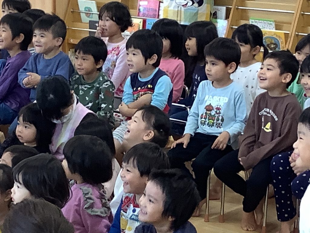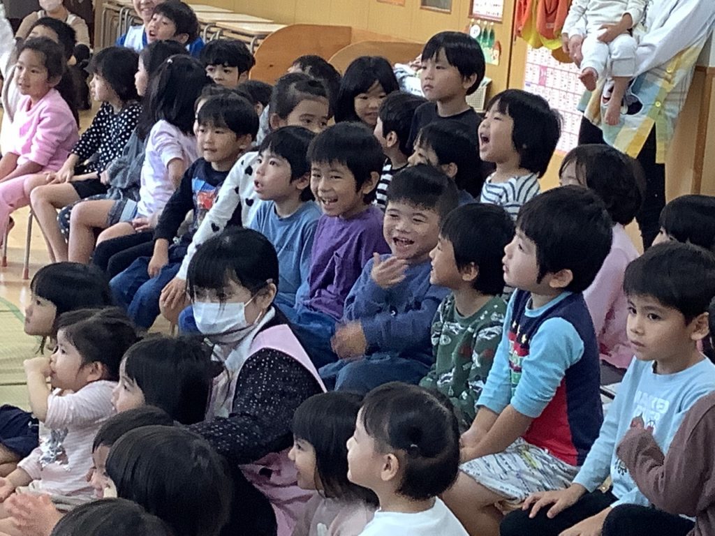「挨拶」をテーマにお話です。「今日ちゃん」と「大見謝さん」のやりとりに大喜びの子ども達!
