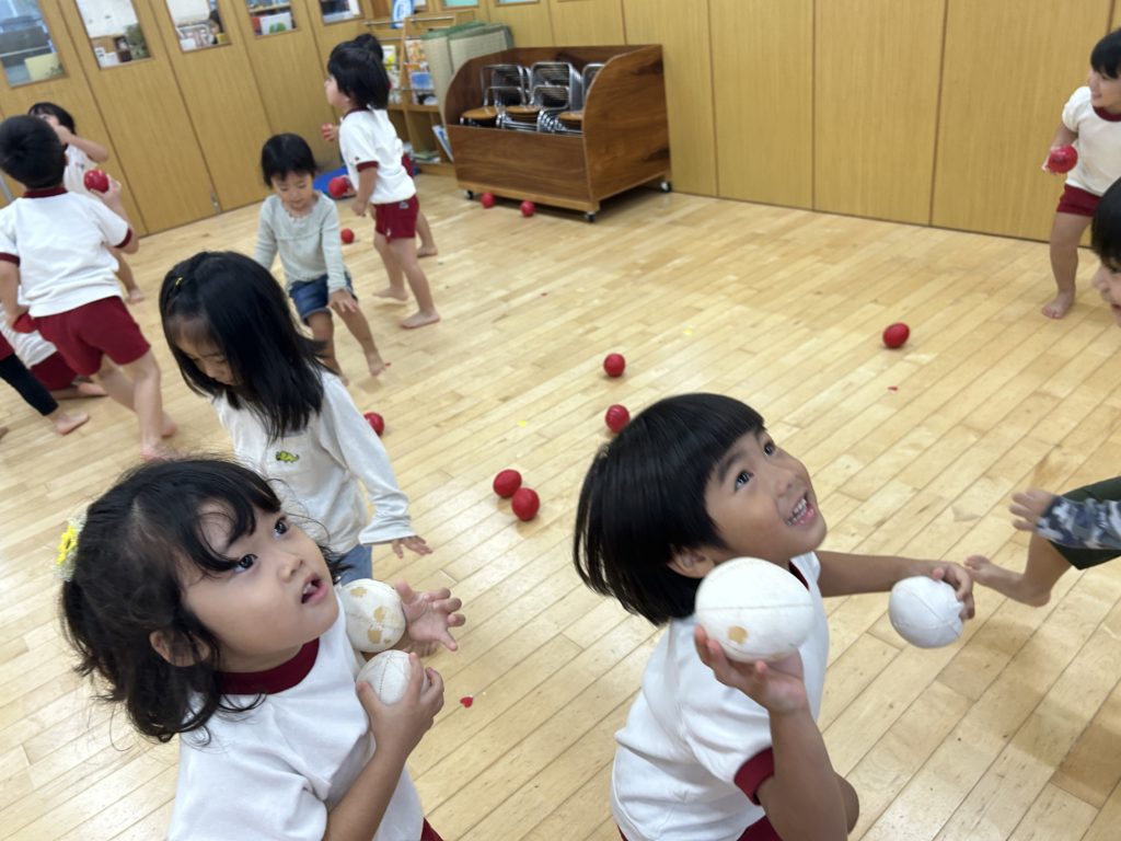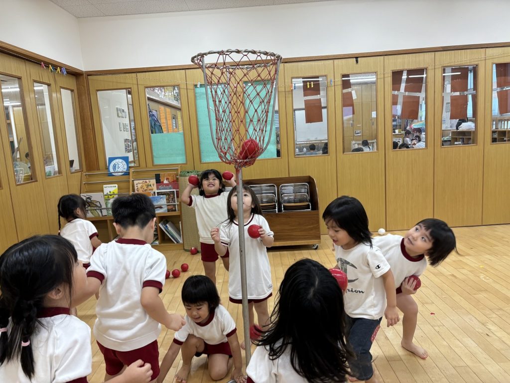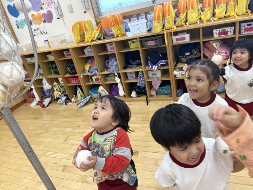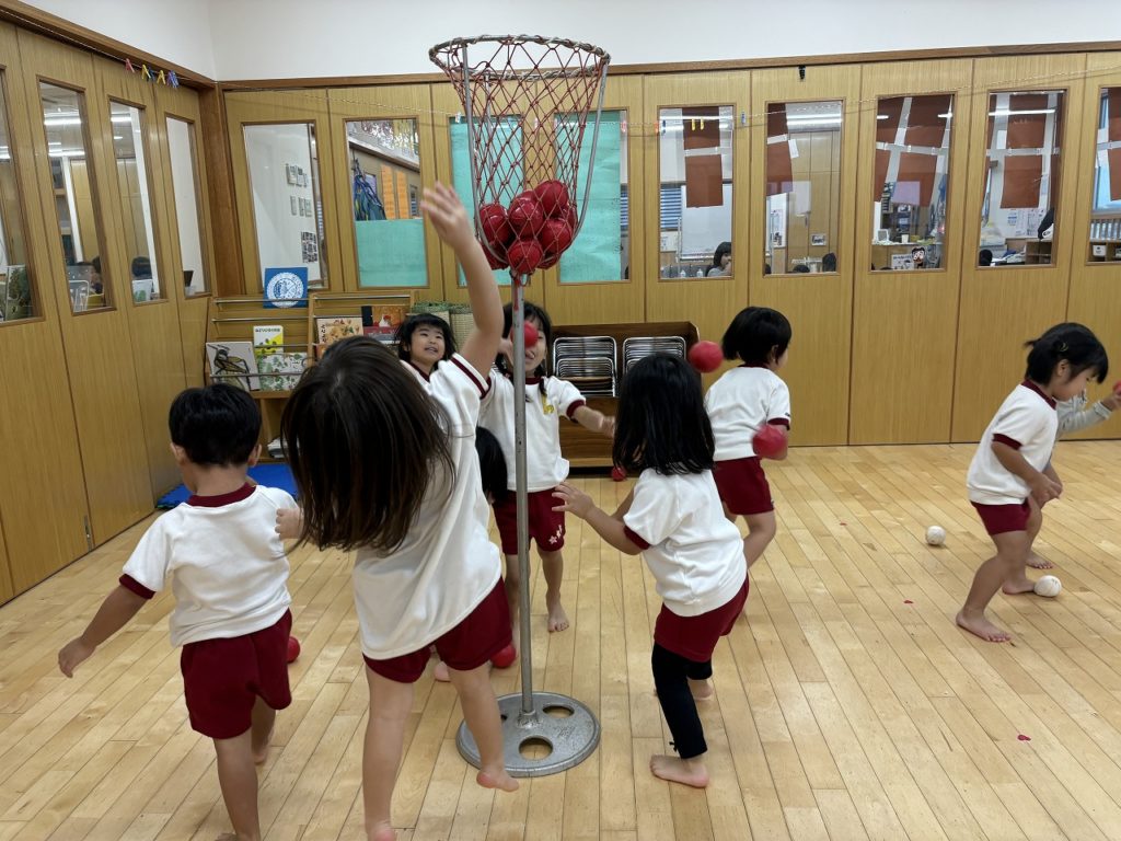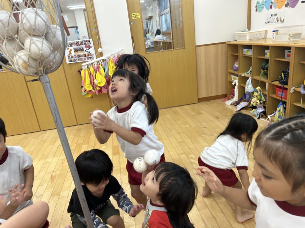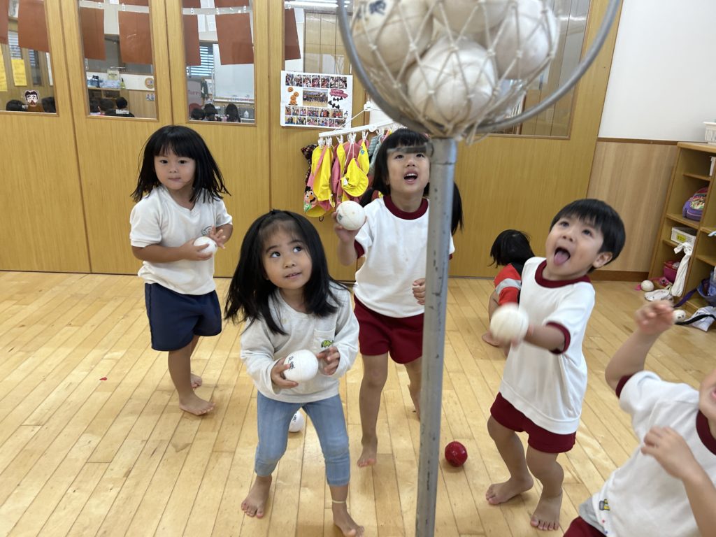 子ども達と相談して、初の玉入れゲームをすることに✨