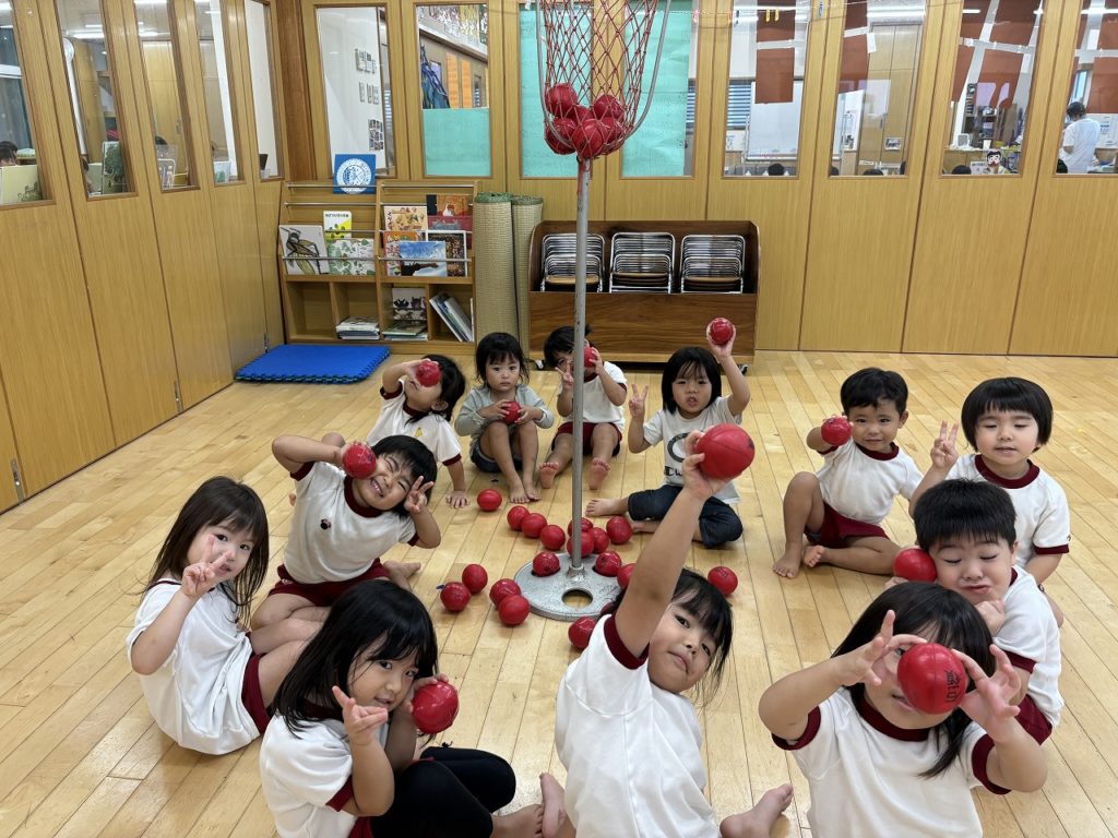 赤チーム!皆、勢いよく球を投げてどんどん溜まっていきます★
