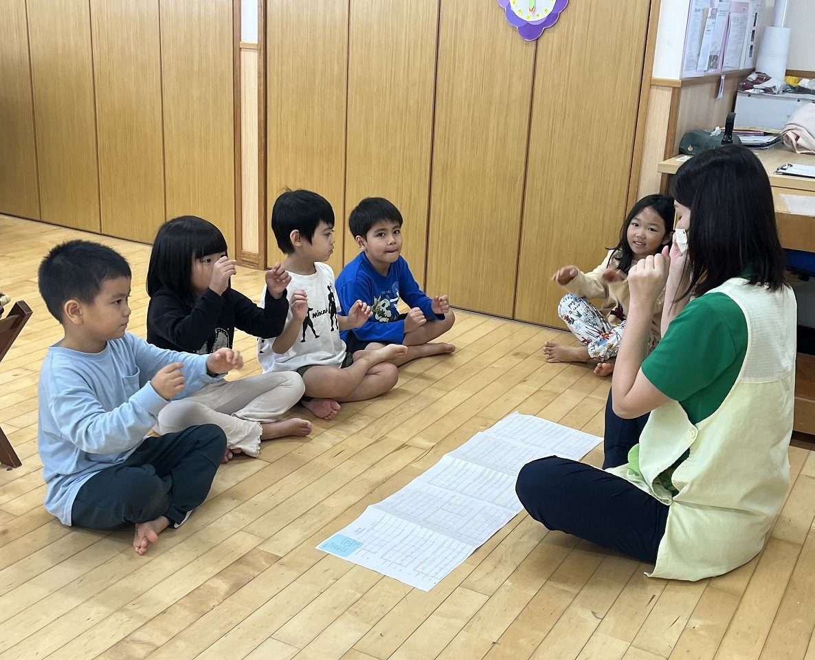グループに分かれて練習!保育士と一緒に「タッタッタ」と声に出しながらリズムの再確認です⭐