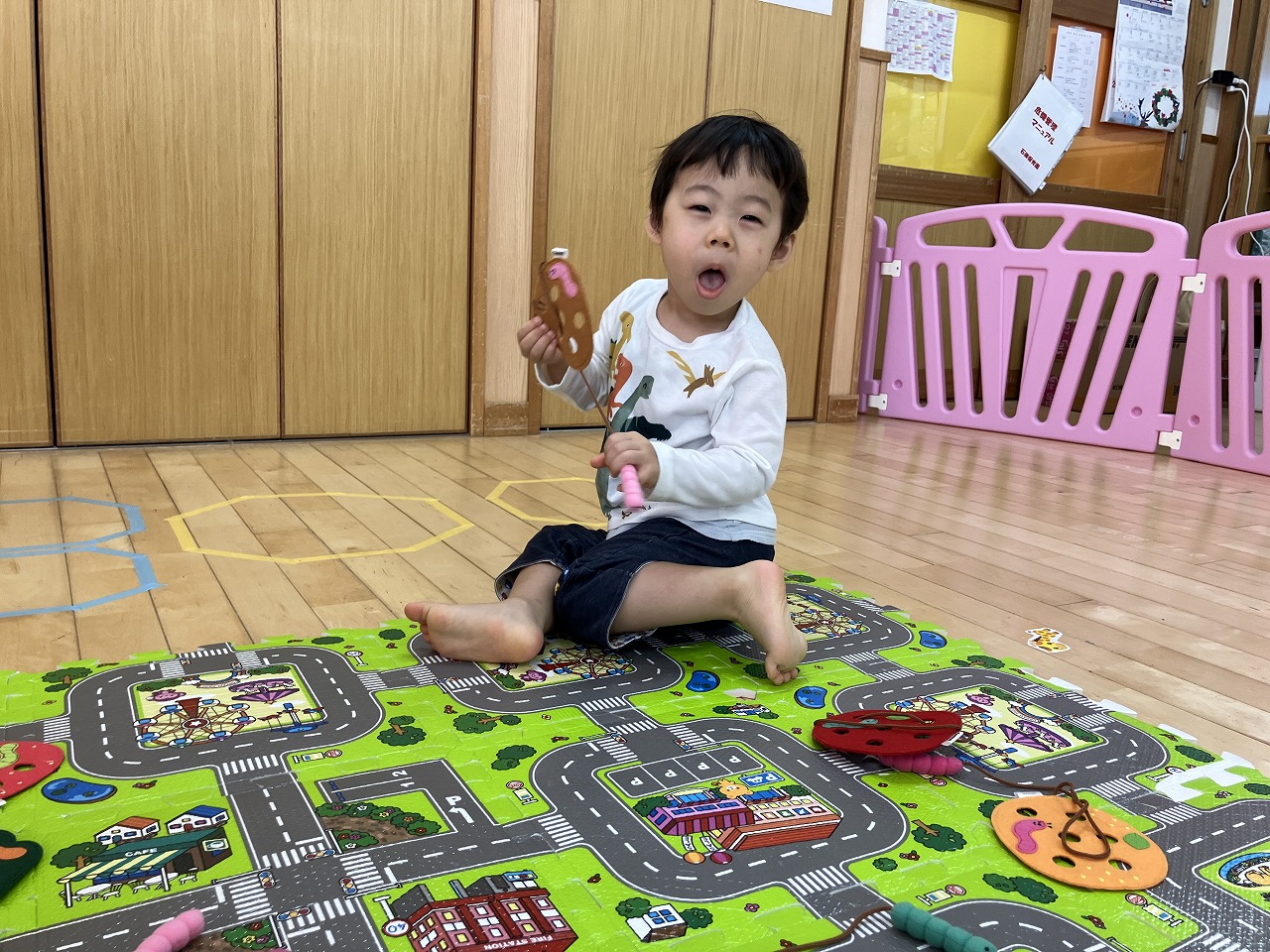 ひも通しは新しいおもちゃなので興味津々🤩夢中で遊んでいます(^^)