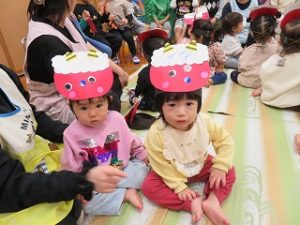 元気良く「おにのパンツ」の歌を歌ったり、本番(笑)に向けて「おには、そとー」と練習をしましたよ![]()