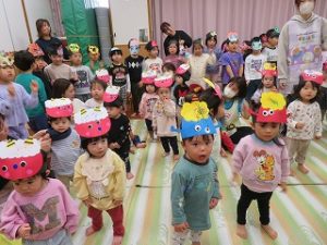 子ども達は、鬼のお面を被り、参加する事を喜んでいましたよ![]()