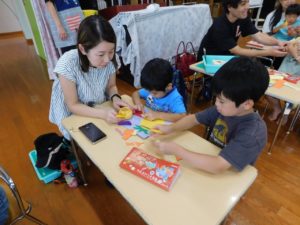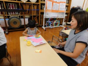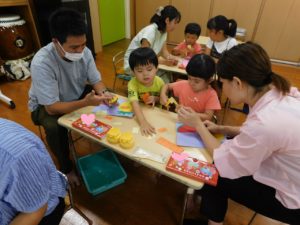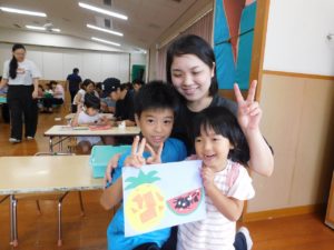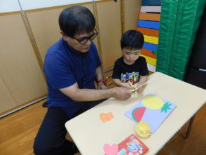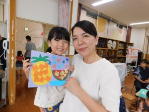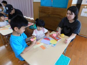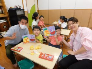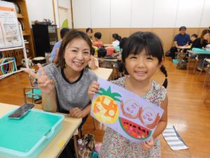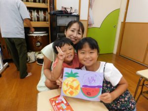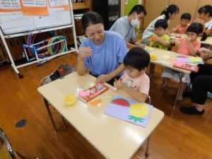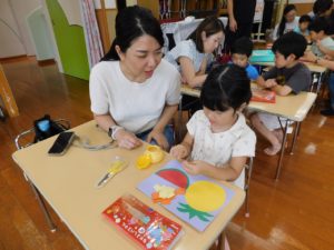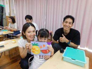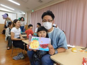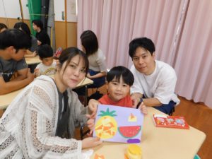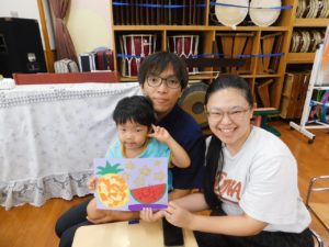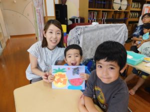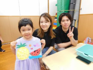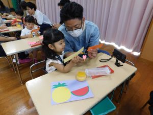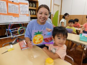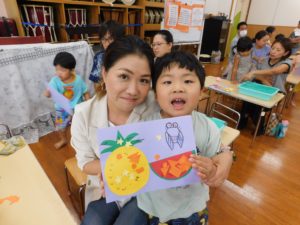 ハサミ、糊、クレヨンを使って、スイカ🍉パイナップル🍍を制作しました💖