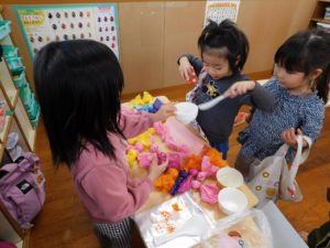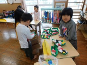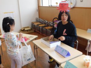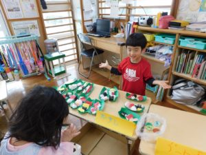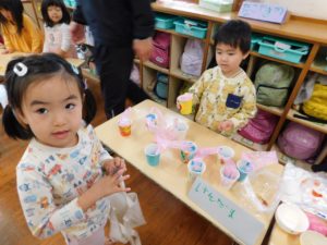 途中で、店員とお客さんの役を交代して、売ったり、買ったりを楽しんでいますよ![]()