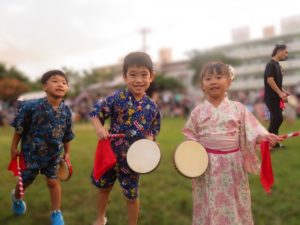 浴衣と甚平をつけてエイサーを披露しましたよ