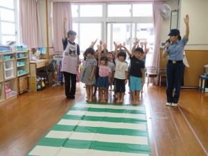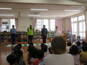 話をしっかり聞いた後は、横断歩道の渡り方を全員で確認しました!!