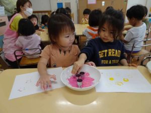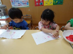 「ピンクにしよう💕」「黄色がいい💕」等、大好きなお母さんへ一生懸命作っています![]()